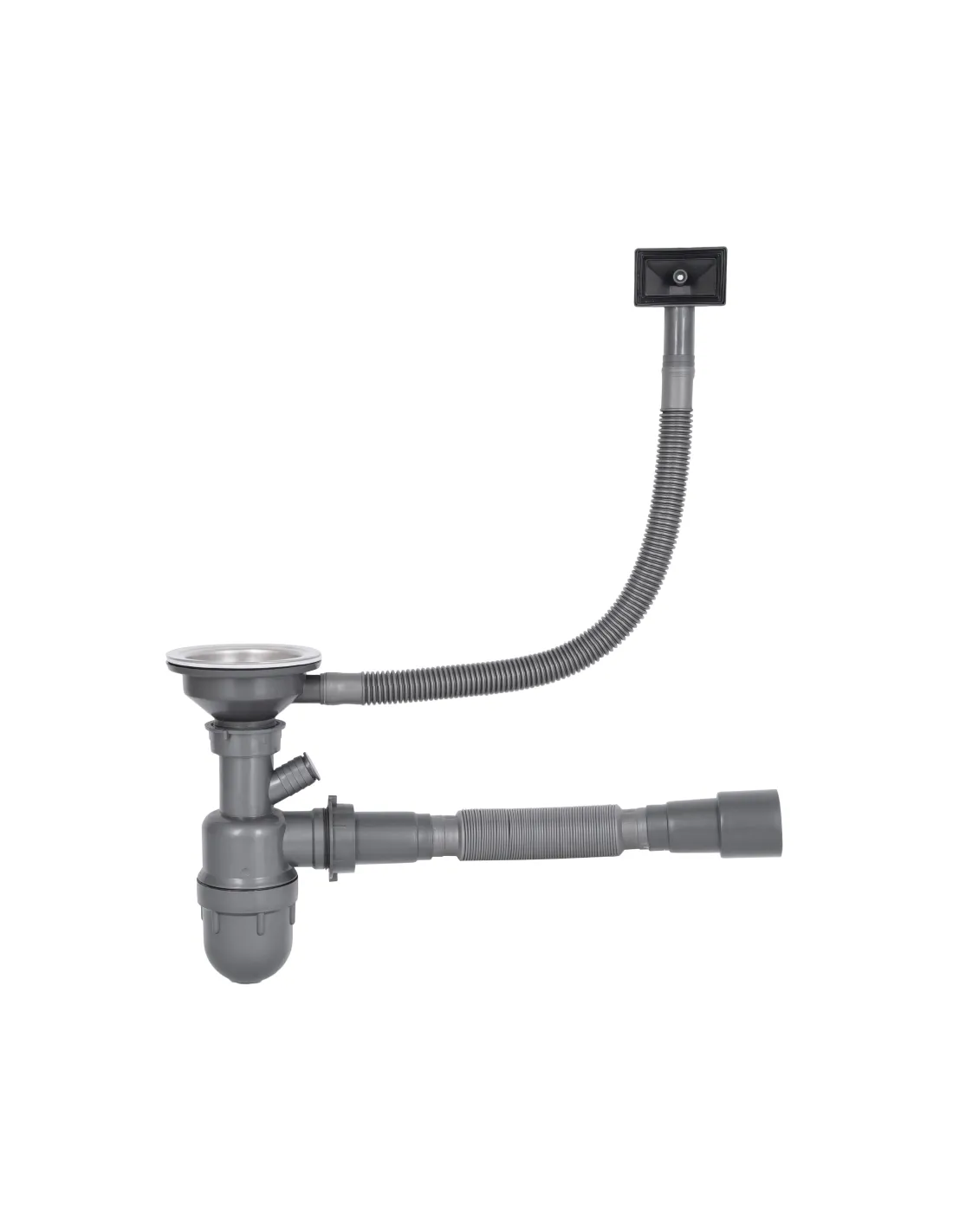 - Сифон із кошиковим вентилем та переливом;