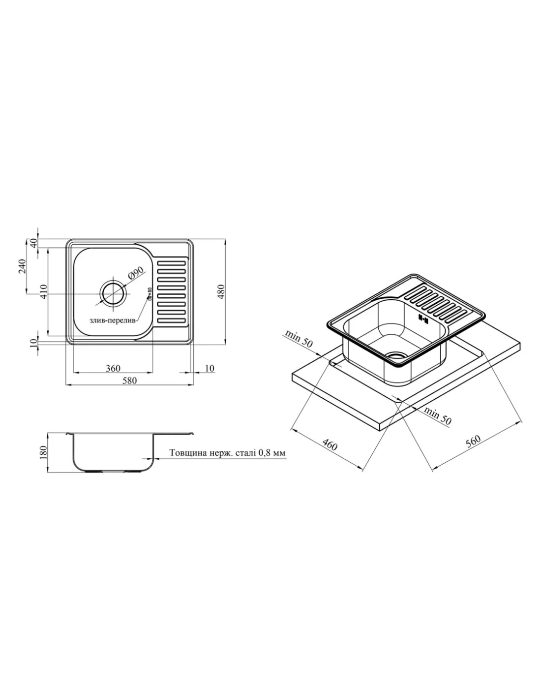 Технічні характеристики миття кухонної прямокутної Kroner KRP Dekor – 5848 з нержавіючої сталі: