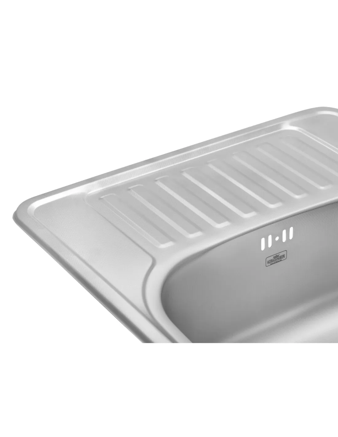 Мийка прямокутна для кухні Kroner KRP Dekor – 5848 із нержавіючої сталі призначена для використання на кухні для миття посуду. Ця мийка – це поєднання якості, сучасного дизайну та надійності. Вона дуже практична, стійка до механічних пошкоджень та корозії, здатна прослужити багато років, зберігаючи первісний зовнішній вигляд та функціональність. Мийка виготовлена в популярній прямокутній формі, має одну основну чашу та зручне крило для сушіння посуду. Завдяки глибині 180 мм у ній легко розмістити великий посуд чи набрати необхідне кількість води, а бортики по периметру запобігають стіканню води на стільницю. Модель виготовлена із нержавіючої сталі SUS201 з декоративною фактурою Dekor, що забезпечує привабливий зовнішній вигляд та довговічність.