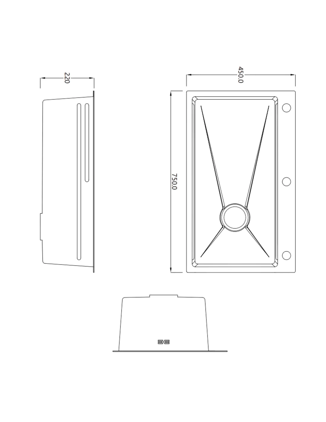 - Розмір миття (Д х Ш х Г): 750 х 450 х 220 мм;