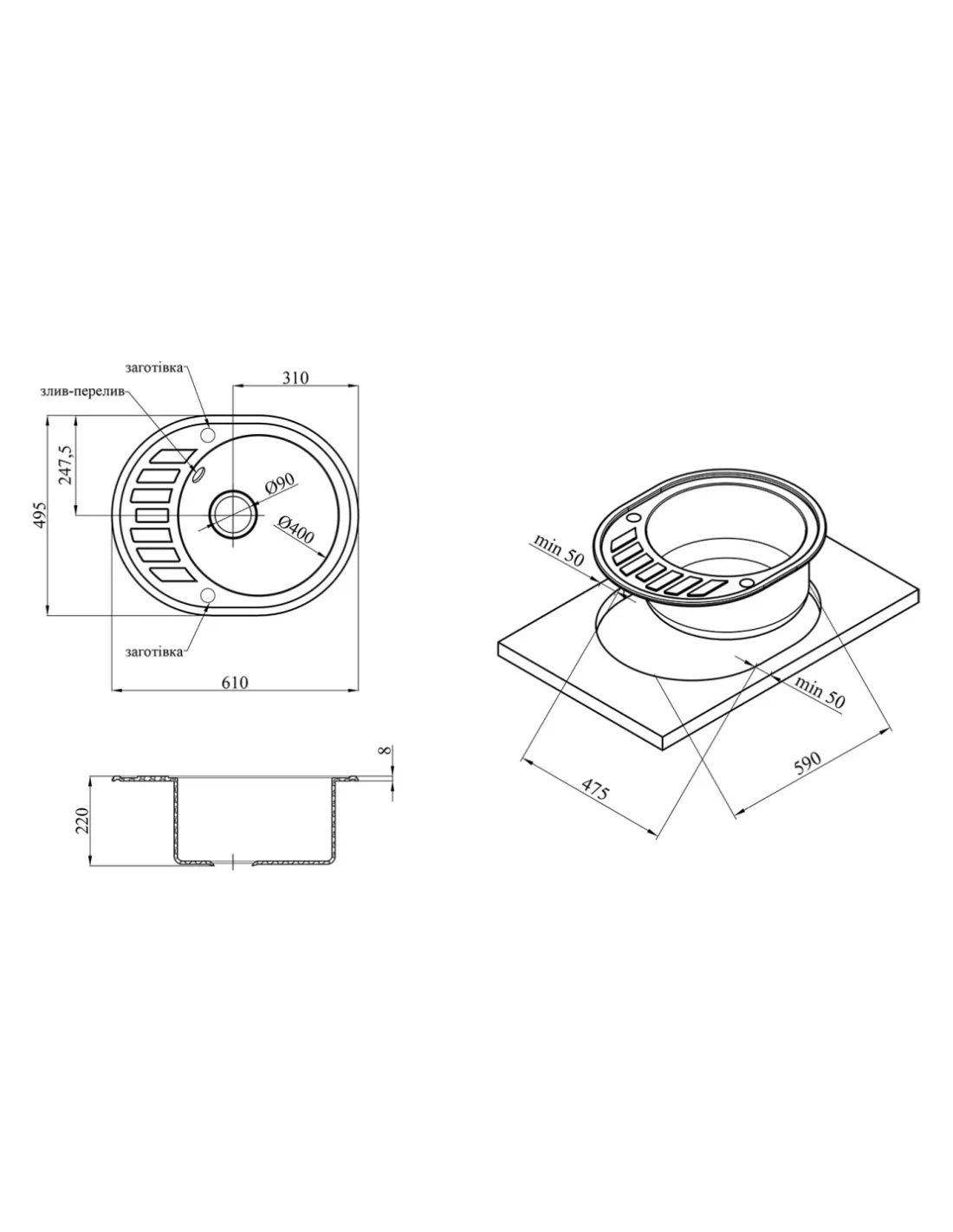 Технічні характеристики миття кухонної кам`яної овальна Kroner KRP Komposit GRA - 6250: