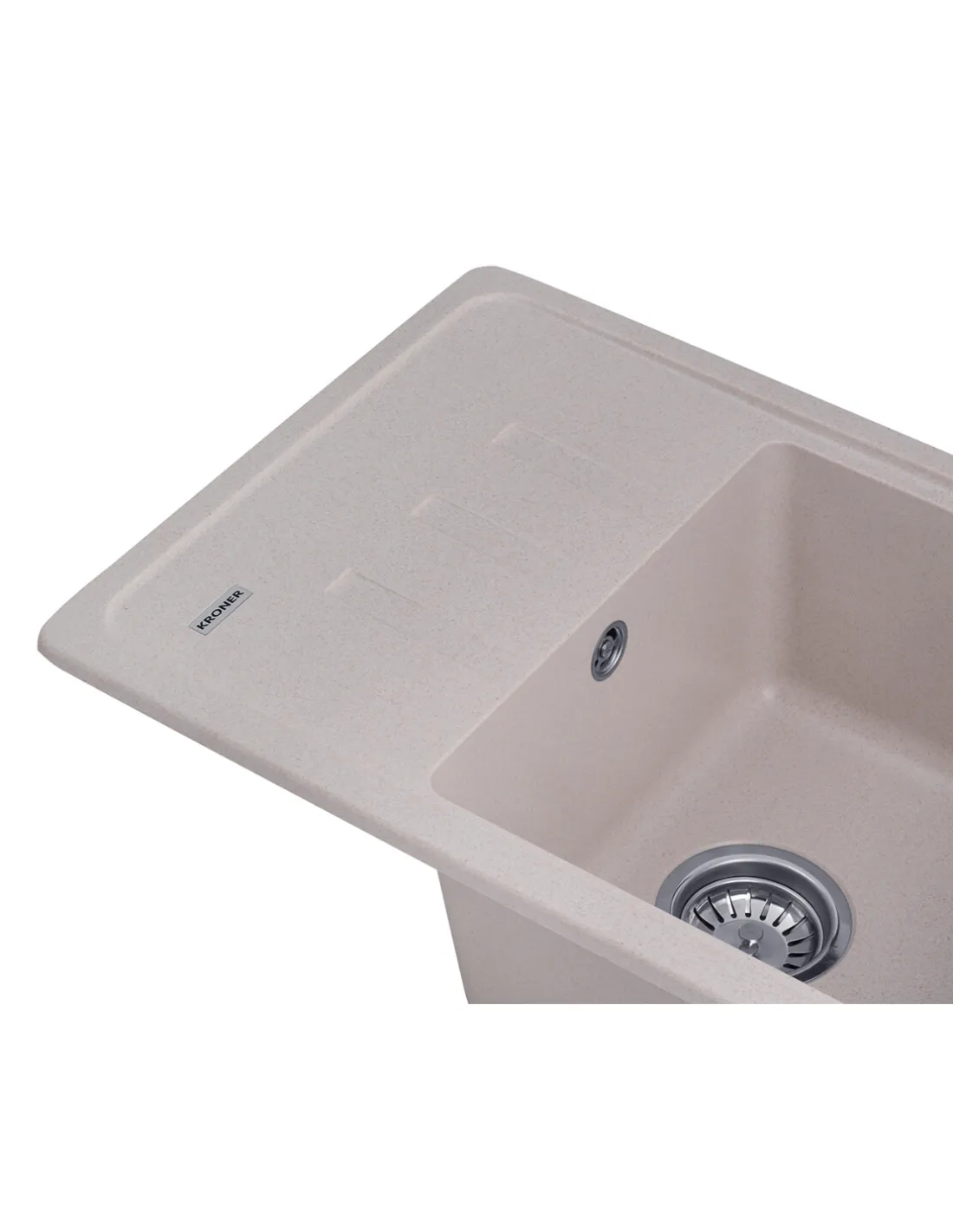 Мийка для кухні Kroner KRP Komposit COL - 6243 пісочного кольору зі штучного каміння призначена для використання на кухні для миття посуду. Ця мийка – це поєднання сучасного дизайну, надійності та довговічності. Вона практична та стійка до зовнішніх впливів, зберігаючи початковий зовнішній вигляд та характеристики протягом усього терміну служби. Миття має приємний пісочний відтінок та матову поверхню, яка не втрачає кольору під дією сонячних променів. Виготовлена у популярній прямокутній формі з однією глибокою чашею та універсальним крилом для сушіння посуду. Глибина чаші 22 см дозволяє комфортно мити велику кількість посуду, а борти запобігають стіканню води на стільницю.