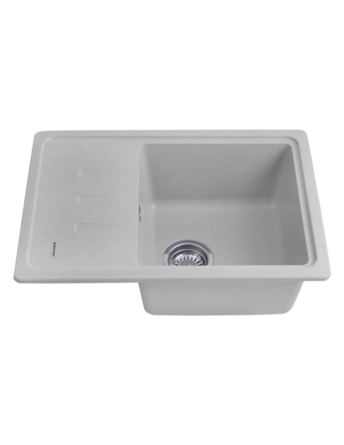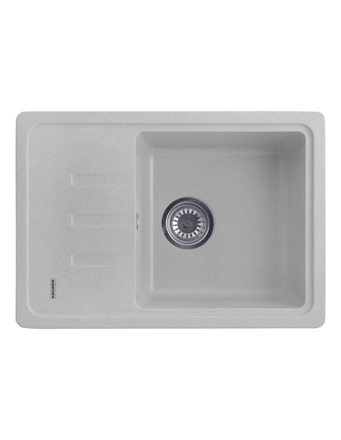 Мийка кухонна прямокутна Kroner KRP Komposit GRA - 6243, 620x430x220 мм сіра, з граніту