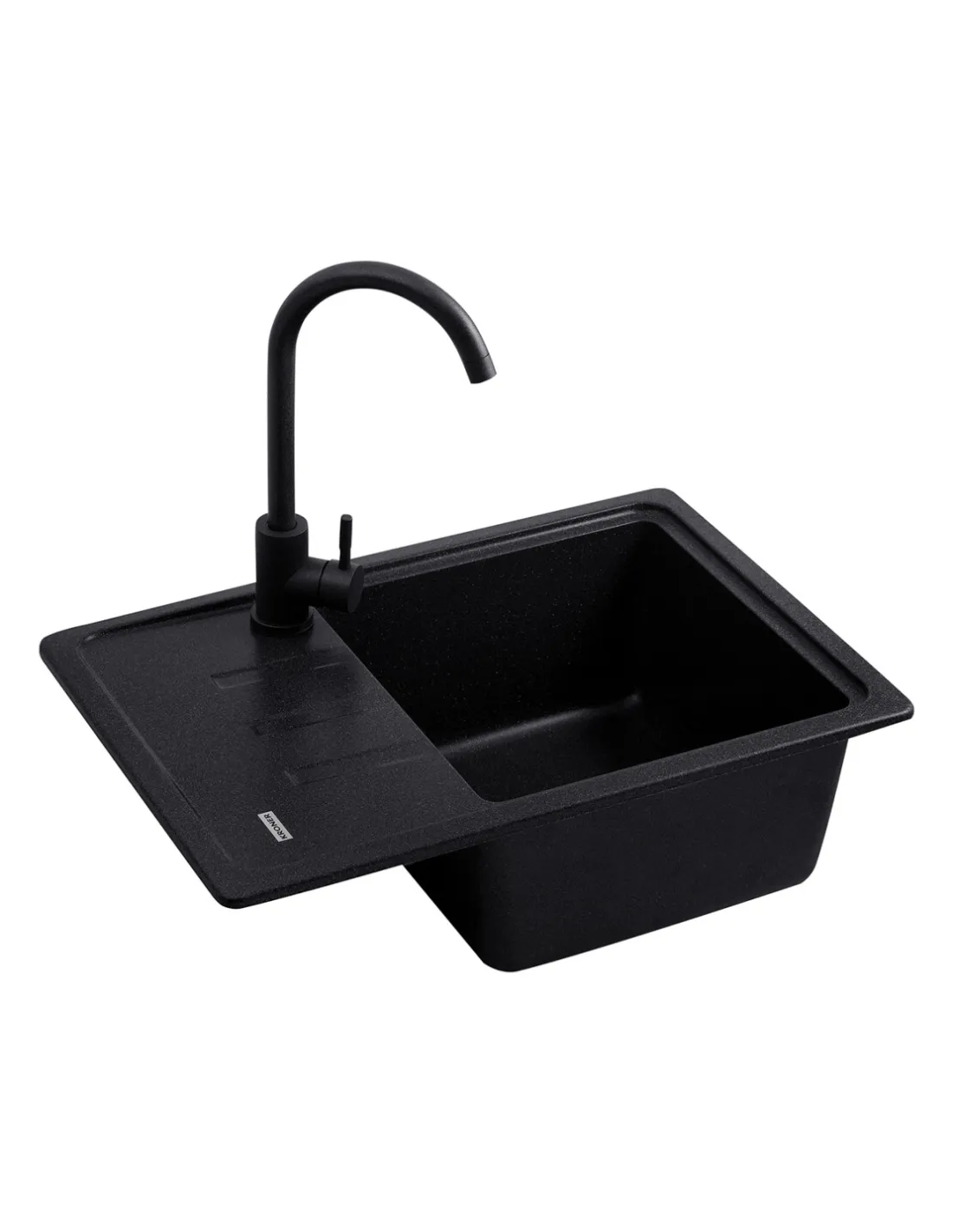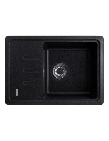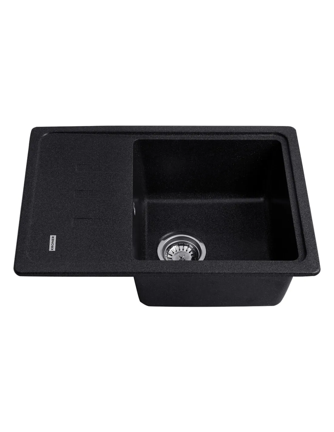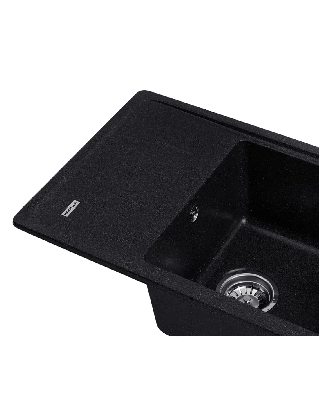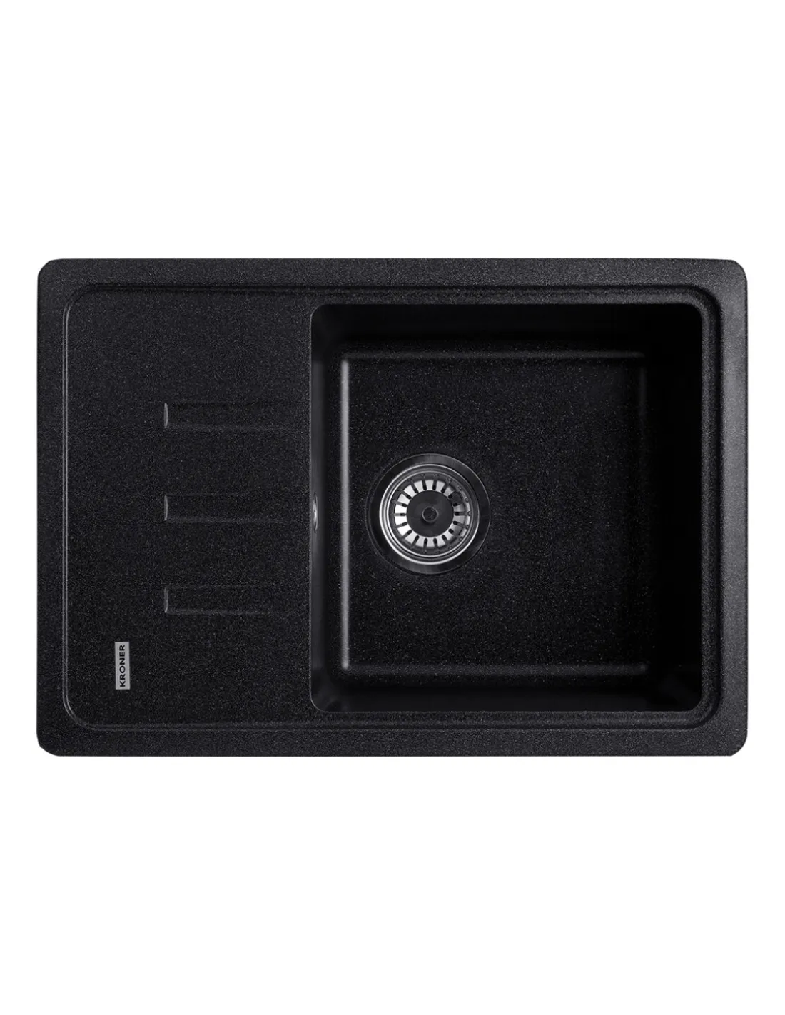 Мийка для кухні Kroner KRP Komposit SCH - 6243 чорного кольору зі штучного каменю призначена для використання на кухні для миття посуду. Ця мийка це зразок якості, презентабельного зовнішнього вигляду та довговічності. Вона дуже практична, здатна прослужити багато років, зберігаючи початкові декоративні та технічні показники протягом усього терміну служби. Миття має чорний колір та матову поверхню, і не втрачає його під дією сонячних лучів. Виготовлена у популярній прямокутній формі. Миття вироблено з однією чашею та з універсальним крилом для сушіння посуду. Завдяки глибині 22 см у ній можна помістити велику кількість посуду, без проблем набрати велику ємність води, а наявність невеликих бортів на мийці не дасть краплям води потрапити на стільницю. Ця модель легко витримує важкий вес продуктів та кухонних пристроїв.