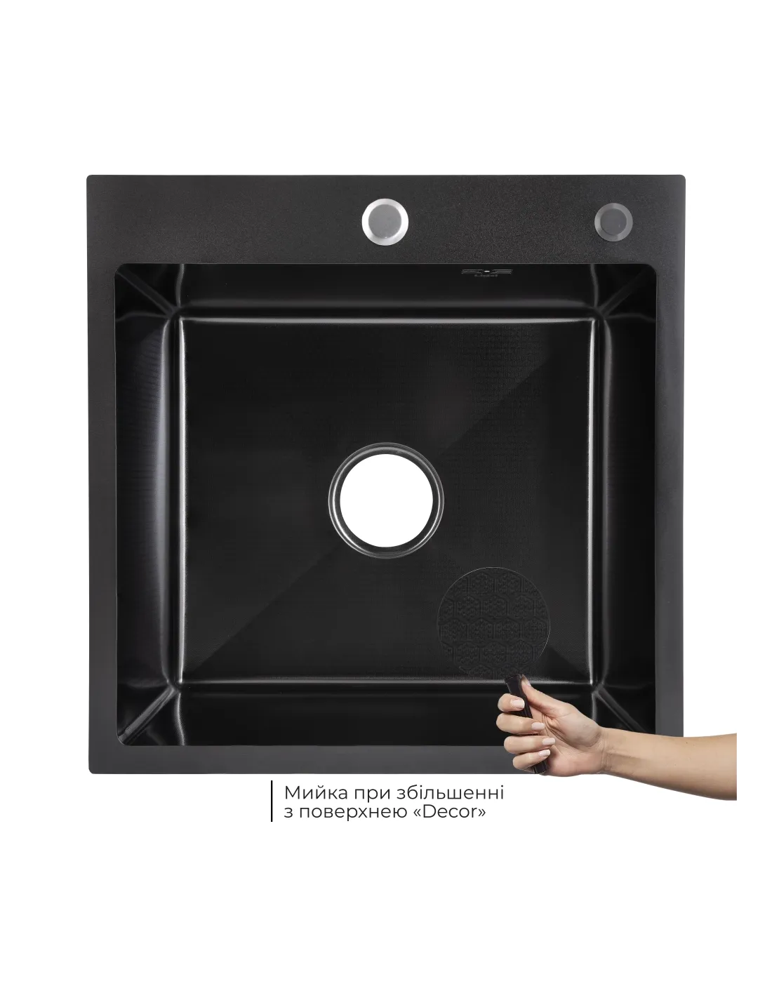 Мийка кухонна металева Lidz Handmade H5050HB Decor Black PVD Honeycomb має ряд переваг: