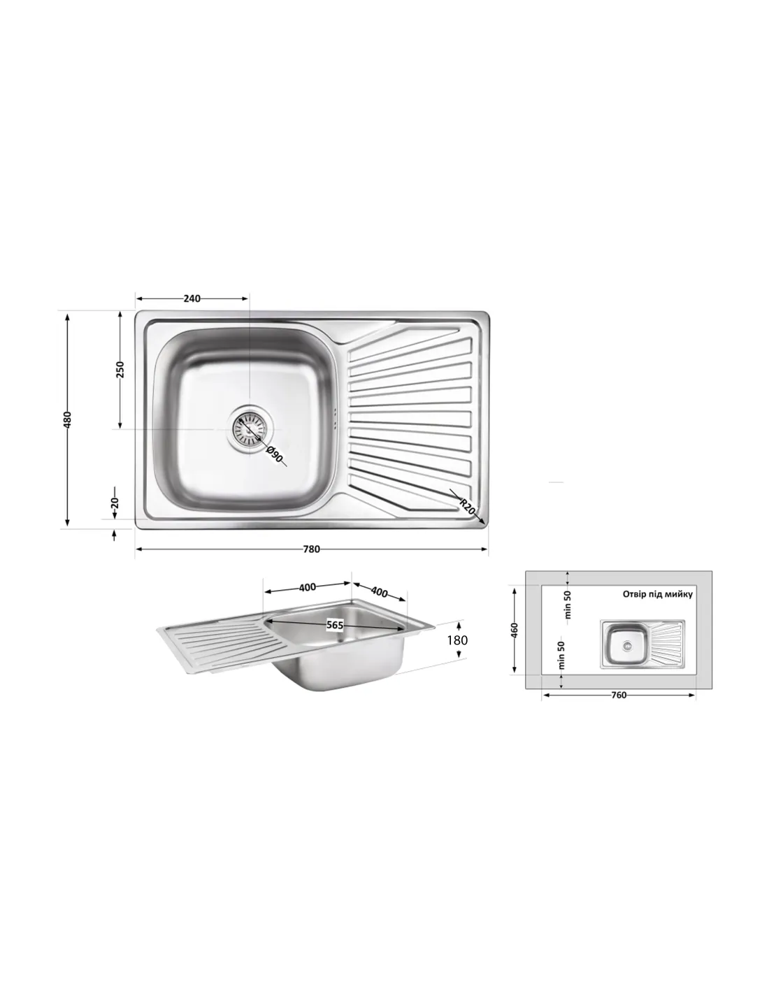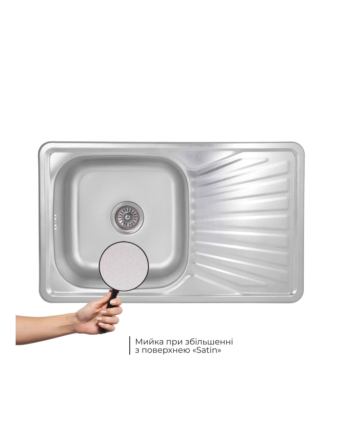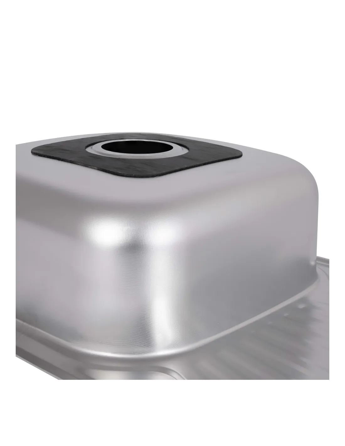 Мийка для кухні прямокутна Brinex 7848 з нержавіючої сталі - призначена для використання на кухні для миття посуду. Ця мийка це зразок якості, презентабельного зовнішнього вигляду та довговічності. Вона дуже практична, здатна прослужити багато років, зберігаючи початкові декоративні та технічні показники протягом усього терміну служби. Мийка виготовлена у найпопулярнішій прямокутній формі. Миття вироблено з однією чашею та невеликим крилом для сушіння посуду. Завдяки глибині 18 см у ній можна помістити велику кількість посуду, без проблем набрати велику ємність води, а наявність невеликих бортів на мийці не дадуть краплям води потрапити на стільницю. Ця модель легко витримує важкий вес продуктів та кухонних пристроїв.