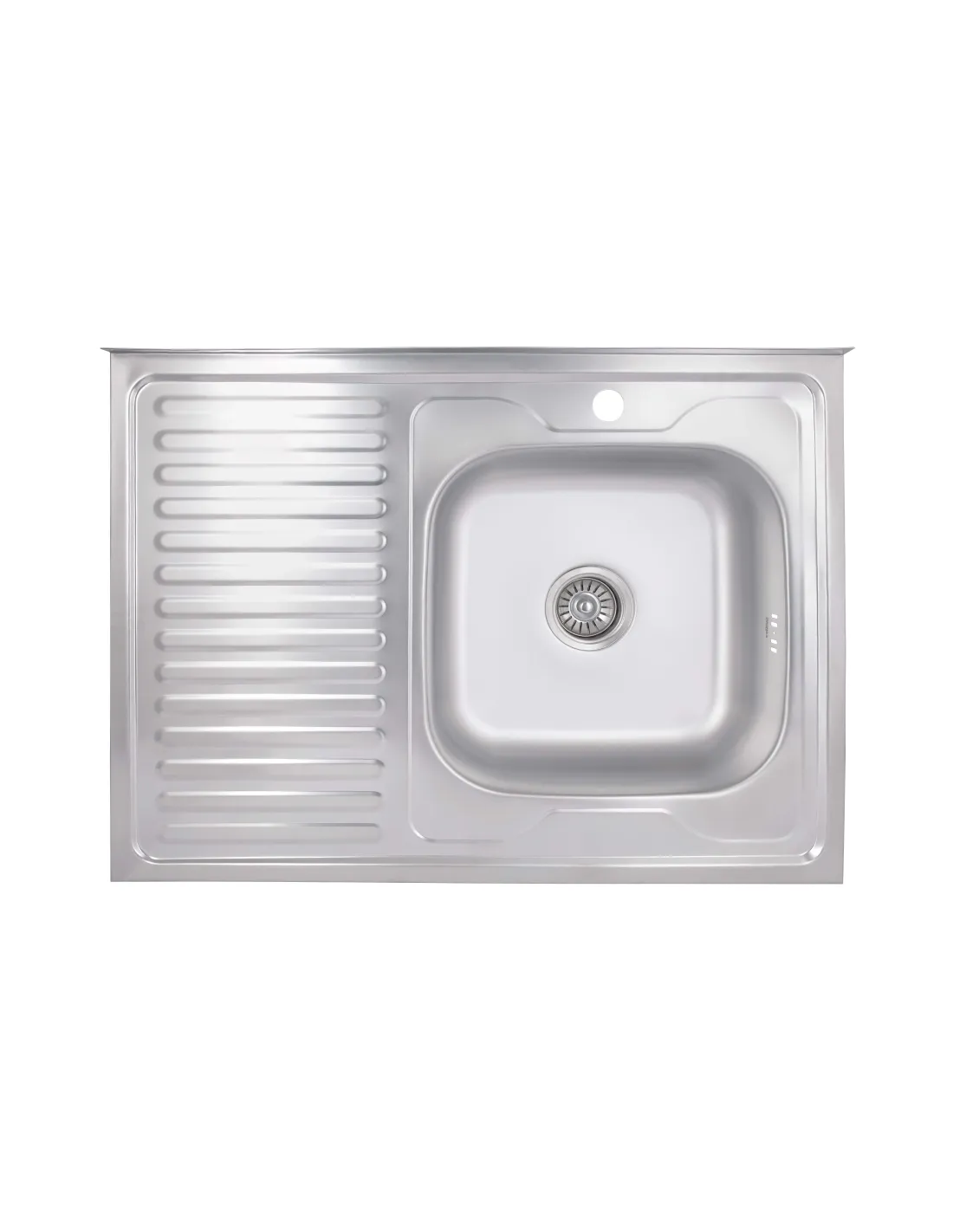 Мойка для кухни прямоугольная Brinex 6080-R из нержавеющей стали - предназначена для использования на кухне для мытья посуды. Данная мойка это образец качества, презентабельного внешнего вида и долговечности. Она очень практична, способна прослужить много лет, сохраняя изначальные декоративные и технические показатели на протяжении всего срока службы. Мойка изготовлена в самой популярной прямоугольной форме. Мойка произведена с одной чашей и небольшим крылом для сушки посуды. Благодаря глубине 16 см в ней можно поместить большое количество посуды, без проблем набрать большую емкость воды, а наличие небольших бортиков на мойке не дадут каплям воды попасть на столешницу. Данная модель с легкостью выдерживает тяжелый вес продуктов и кухонных приспособлений.