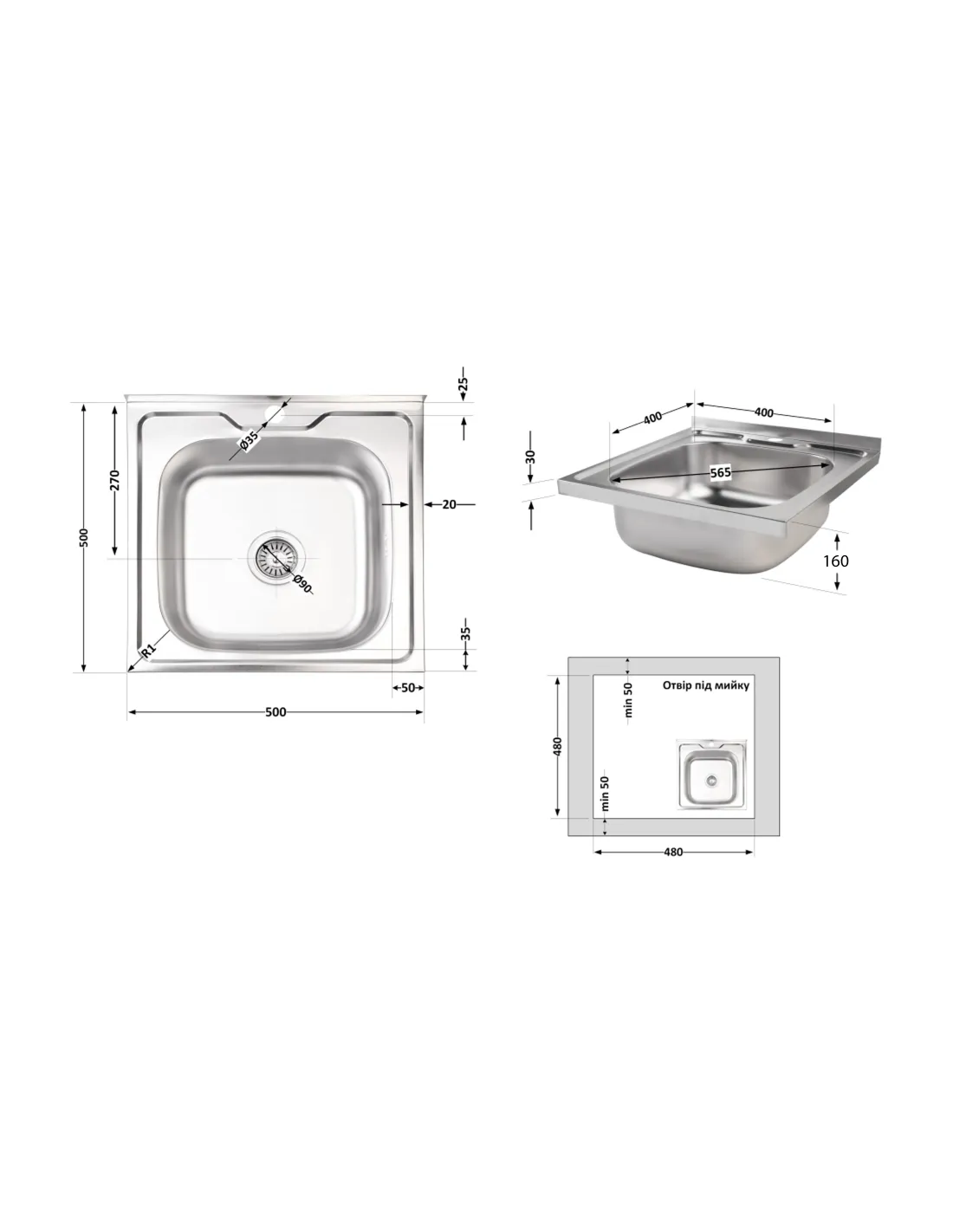 Мойка кухонная квадратная Brinex 5050 предназначена для установки и использовании на кухне при мытье посуды. Изготовлена мойка из одного из самых лёгких и прочных материалов - пищевой нержавеющей стали толщиной 0,6 мм, что обеспечивает устойчивость к коррозии и долговечность изделия. Качество нержавеющей стали даёт возможность активно эксплуатировать мойку, не бояться за образование трещин, и царапин. Такая мойка при правильной эксплуатации надолго сохранит аккуратный внешний вид. Кухонная мойка из нержавеющей стали удобна в повседневном использовании. Благодаря глубине чаши 16 см в ней можно поместить большое количество посуды, мыть посуду не разбрыгивая воду. Без проблем набрать большую емкость воды в чаше, а наличие небольших бортиков на мойке не дадут каплям воды попасть на столешницу. Данная модель с легкостью выдерживает тяжелый вес продуктов и кухонных приспособлений.