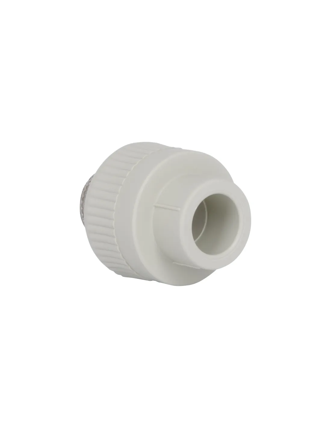 Монтаж PPR-части осуществляется методом раструбной термической сварки. Комбинированная муфта незаменима для подключения запорной арматуры, коллекторов или других элементов, требующих наружной резьбы 3/4 дюйма.