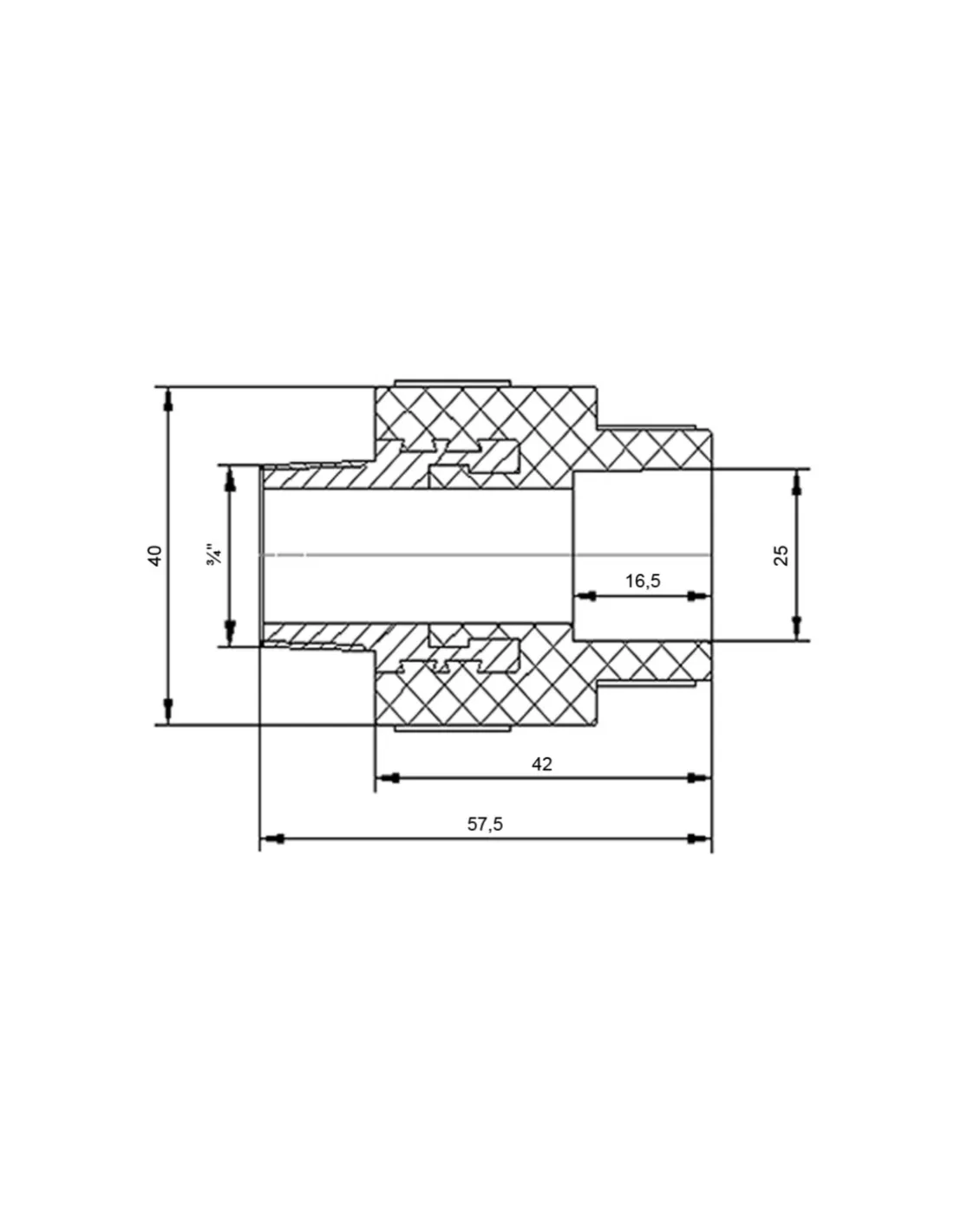 Корпус муфти виконаний з високоякісного поліпропілену (PPR PN20), а латунна різьбова вставка із зовнішнім різьбленням 3/4 дюйма. Фітинг витримує максимальний робочий тиск 20 бар і підходить для використання як у ГВП, так і в ГВП.