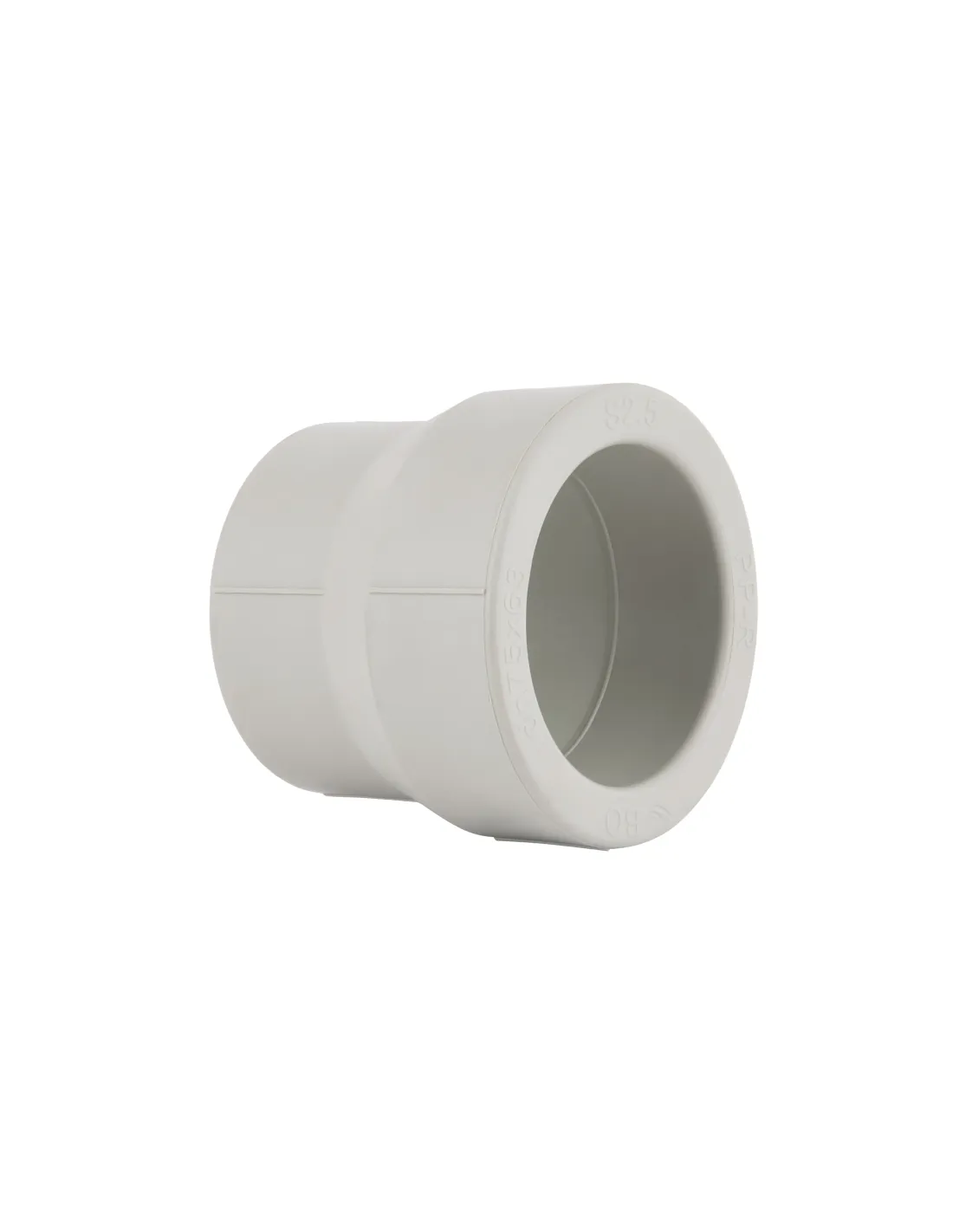 Изделие выполнено из высококачественного полипропилена (PPR PN20), который устойчив к коррозии, агрессивным средам и высоким температурам. Редукционная муфта подходит для использования в системах холодного и горячего водоснабжения, а также в отоплении при рабочем давлении до 20 бар.
