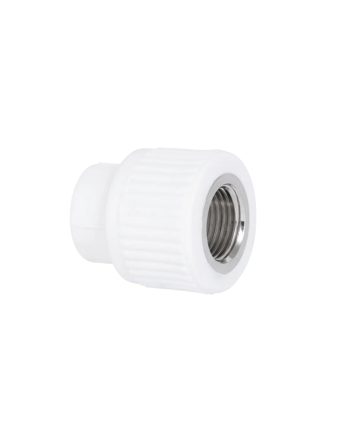 Корпус муфты выполнен из высококачественного полипропилена (PPR PN20), устойчивого к коррозии и агрессивным средам. Резьбовая вставка из латуни, надежно закрепленная внутри корпуса, обеспечивает прочность и долговечность резьбового соединения. Фитинг выдерживает максимальное рабочее давление 20 бар и подходит для использования как в ХВС, так и в ГВС.
