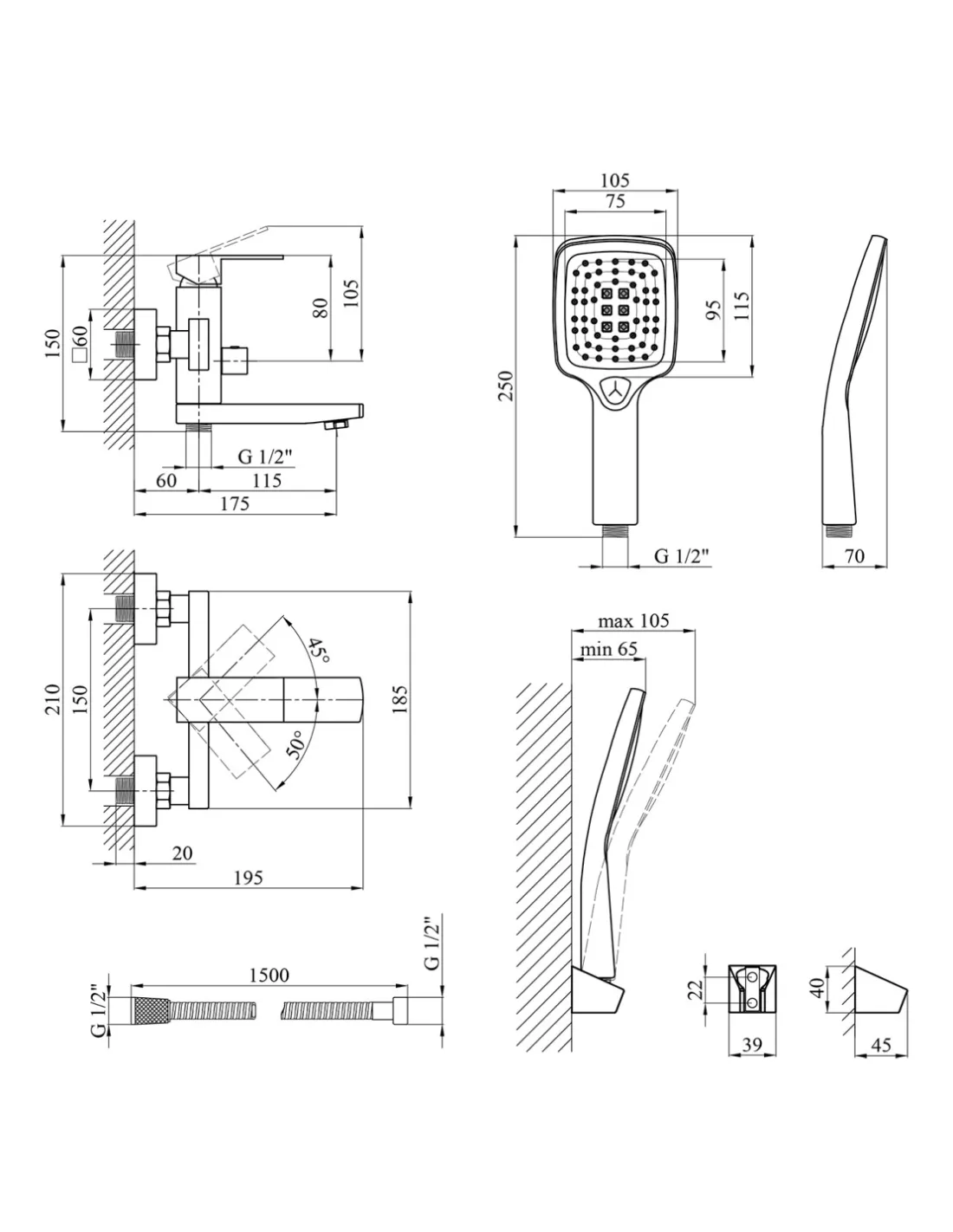 - Душевий шланг (1500 мм),