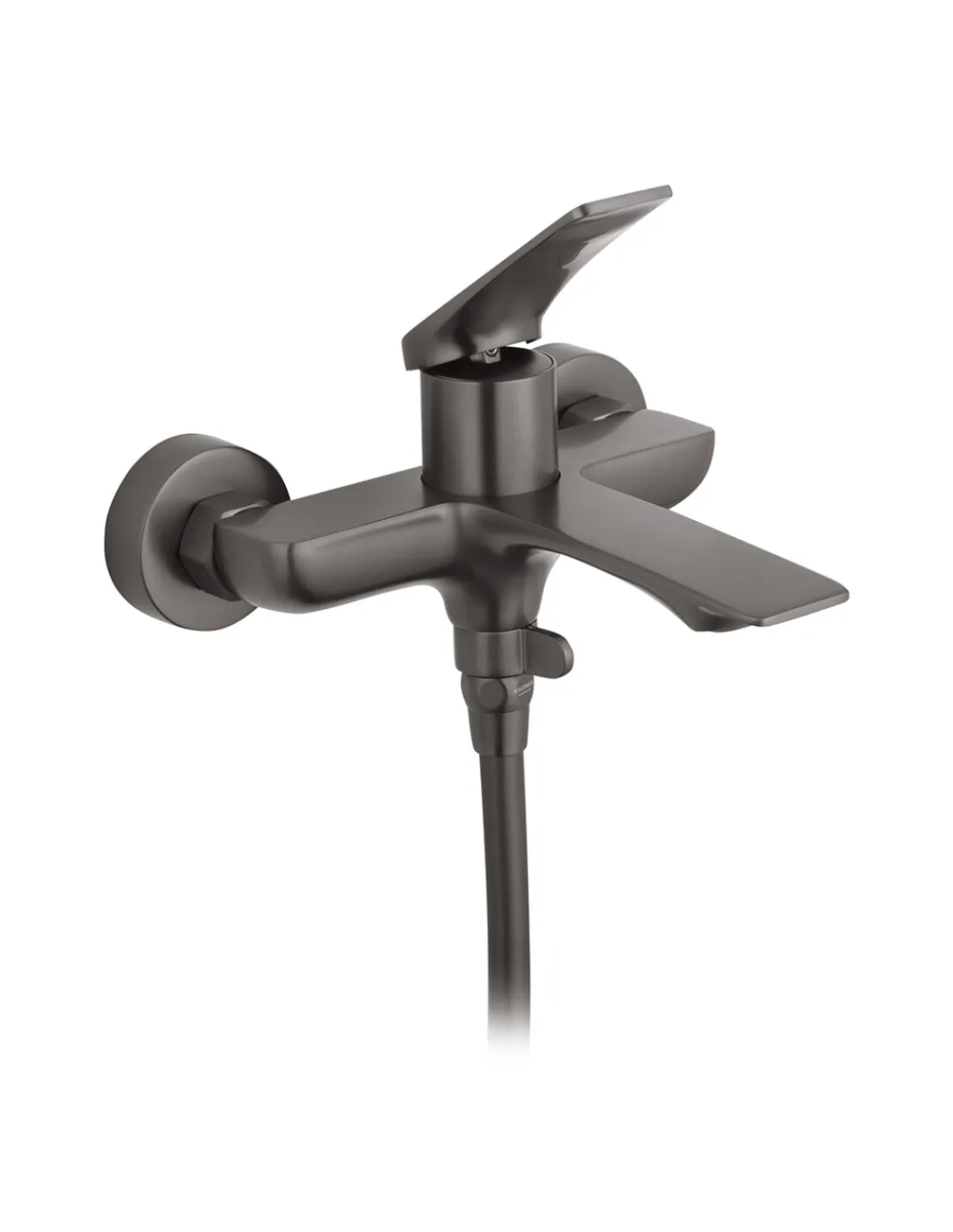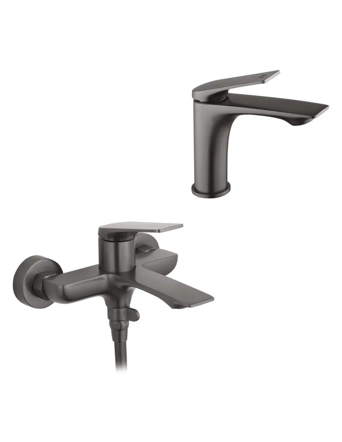 Изделия выполнены из высококачественной латуни, устойчивой к коррозии и долговечной в эксплуатации. Глянцевое графитовое покрытие придает смесителям современный и элегантный вид. Картриджный механизм обеспечивает плавное и точное регулирование температуры и напора воды. Душевой шланг оснащен системой предотвращения скручивания для удобства эксплуатации.