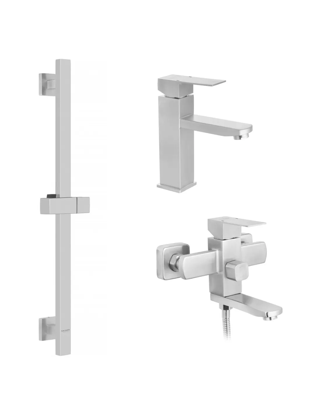 Набор смесителей Kroner для ванны Edelstahl Kubus-ESG010 для раковины Edelstahl Kubus-ESG060 и штанга для душа Edelstahl Kubus-E