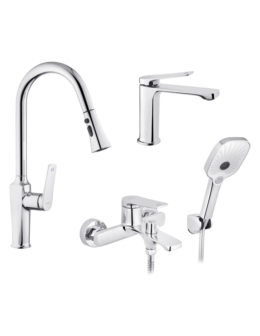 Набор смесителей Kroner для ванны Makon-C060 для кухни Makon-C030-T и для раковины Makon-C010