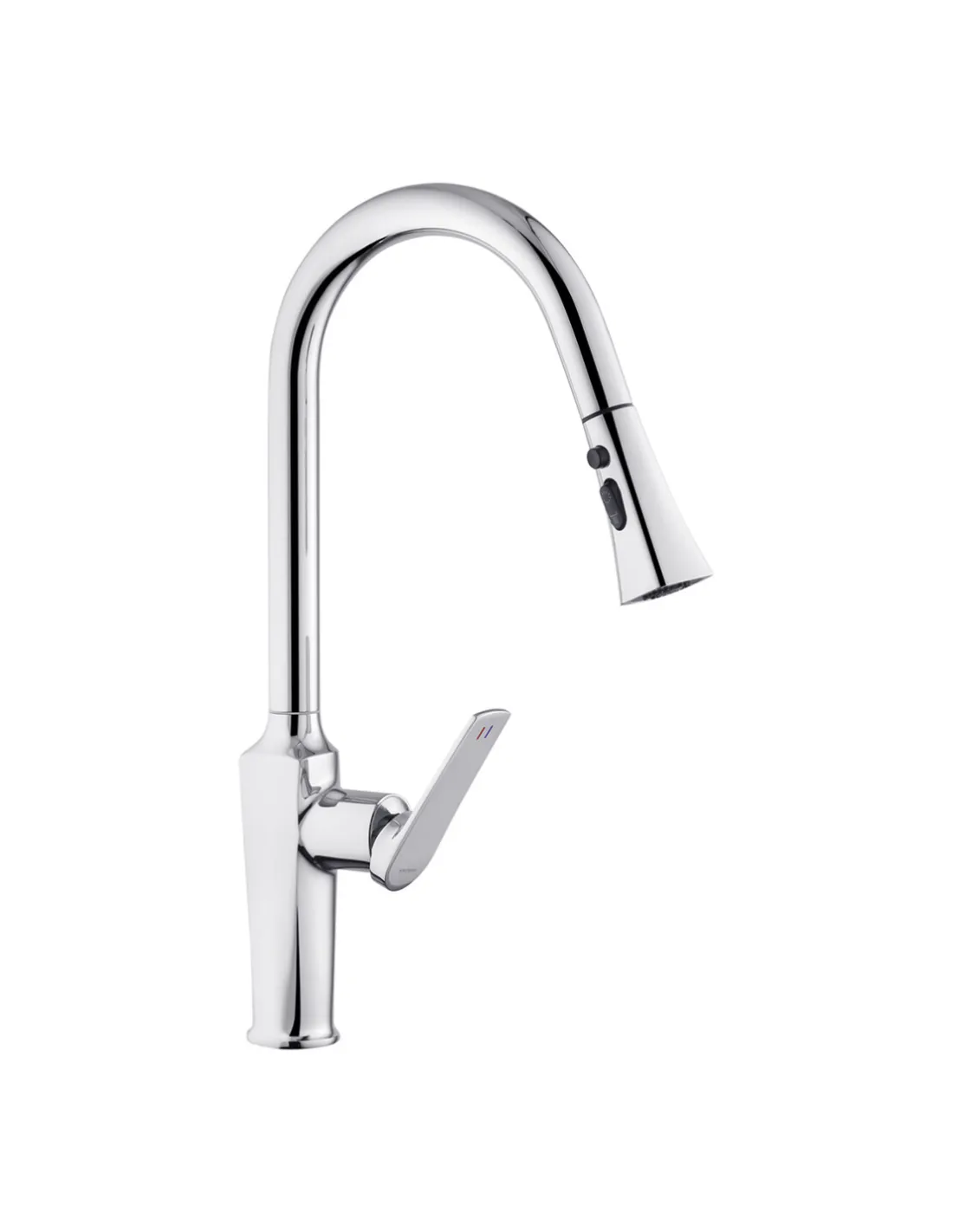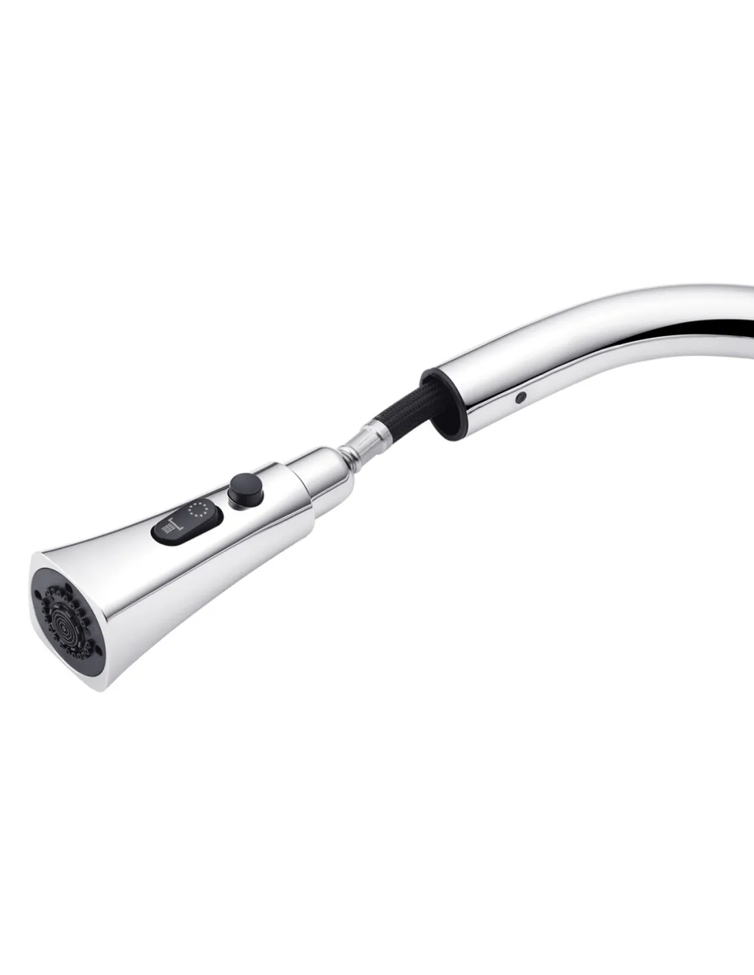 - Смеситель кухни имеет выдвижной излив с U-образной формой,