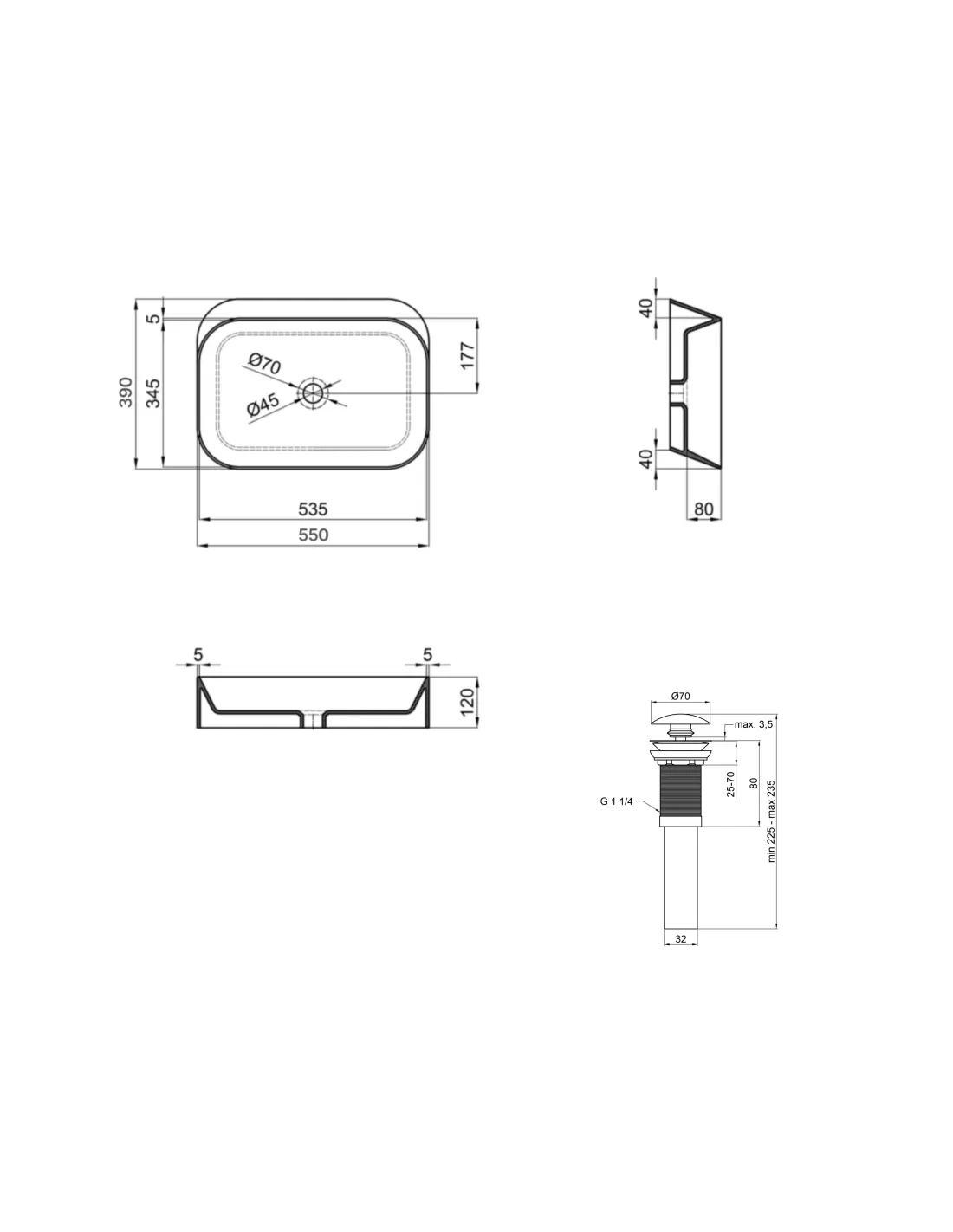 - Діаметр зливу: 45 мм;