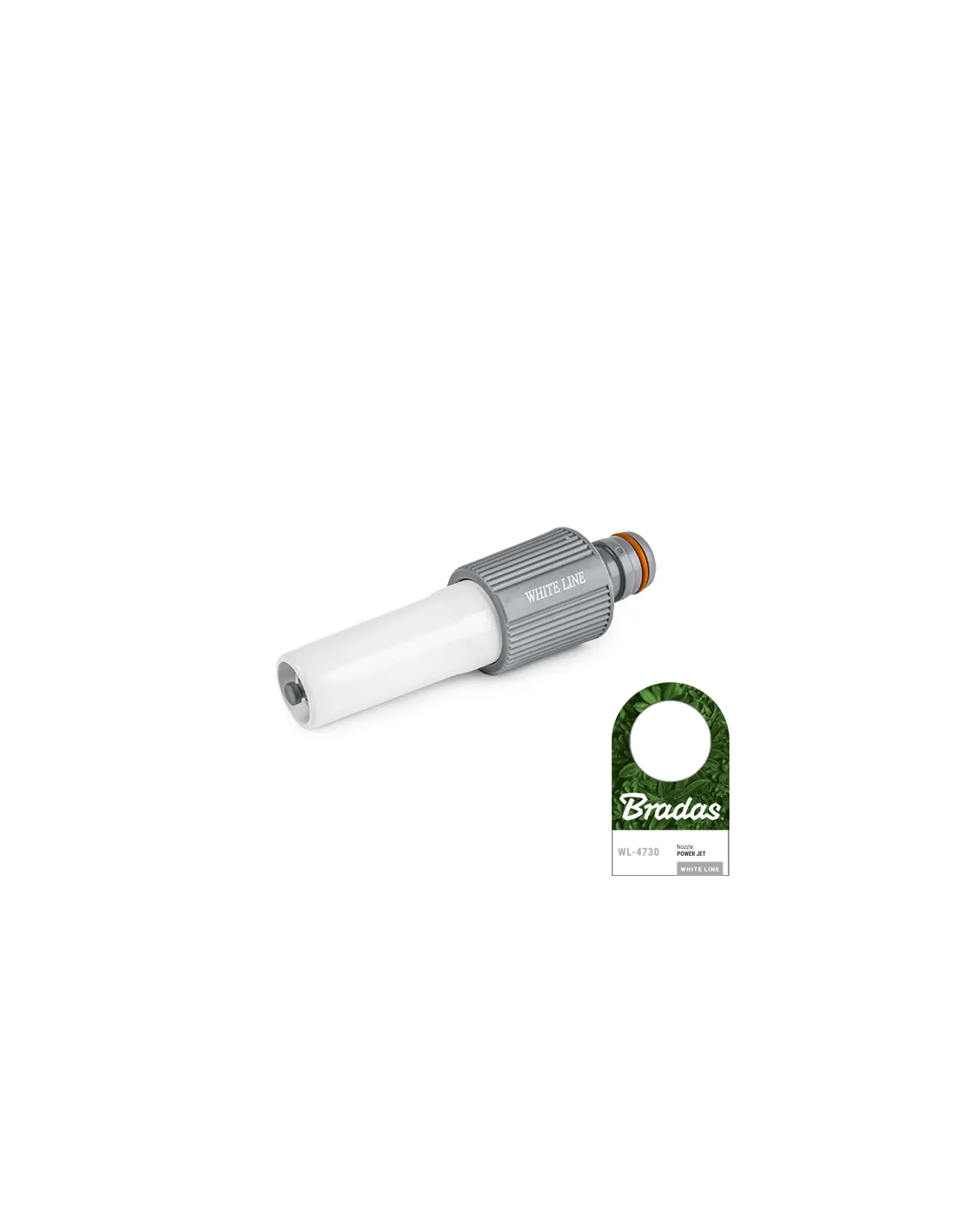 Насадка-розпилювач Bradas Power Jet White Line WL-4730 - призначена для ручного поливу рослин, клумб, грядок, дерев, зрошення садових та присадибних ділянок. Має плавне регулювання: від потужного спрямованого струменя до дрібнодисперсного розпилення у вигляді «парасольки». Відрізняється простою та надійною конструкцією, розрахованою на тривале використання.