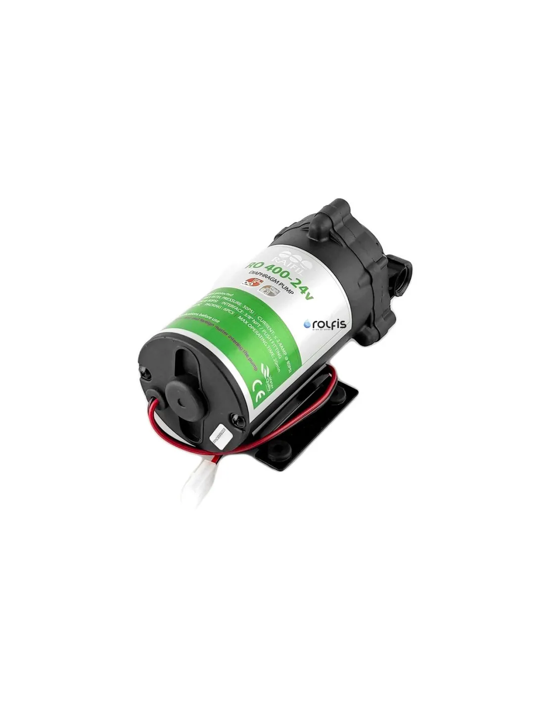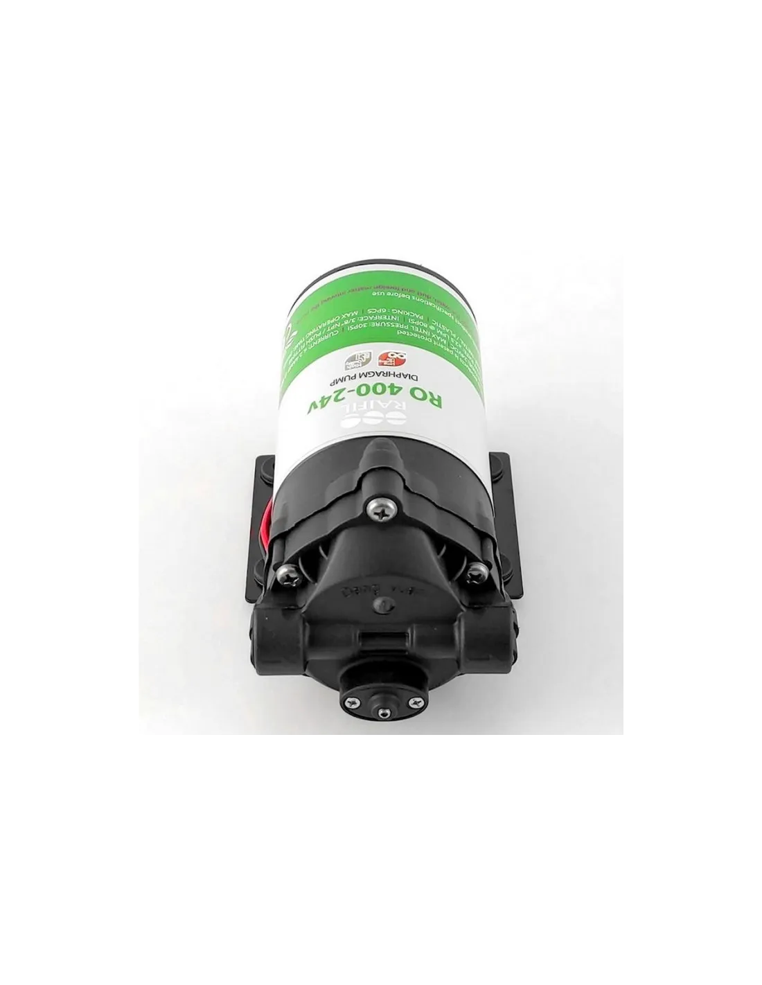 Насос побутовий Raifil New 400 гал призначений для підвищення тиску води в побутових системах зворотного осмосу. Монтується стаціонарно чи переносним способом. Виготовлений із високоякісних матеріалів. Робоча напруга: 24 В постійного струму, споживаний струм – 2,5 А. Підключення: 3/8 дюйма NPT. Робочий напір: 5,5 Бар, вхідний напір: 2 Бар. Продуктивність: 160 л/година. Робоча температура води: 5-40 градусів за Цельсієм. Для коректної роботи насоса рекомендується дотримання тиску води на вході 2-3 бар. Тип установки – горизонтальний. Гарантія – 14 днів. Країна-виробник – Південна Корея.