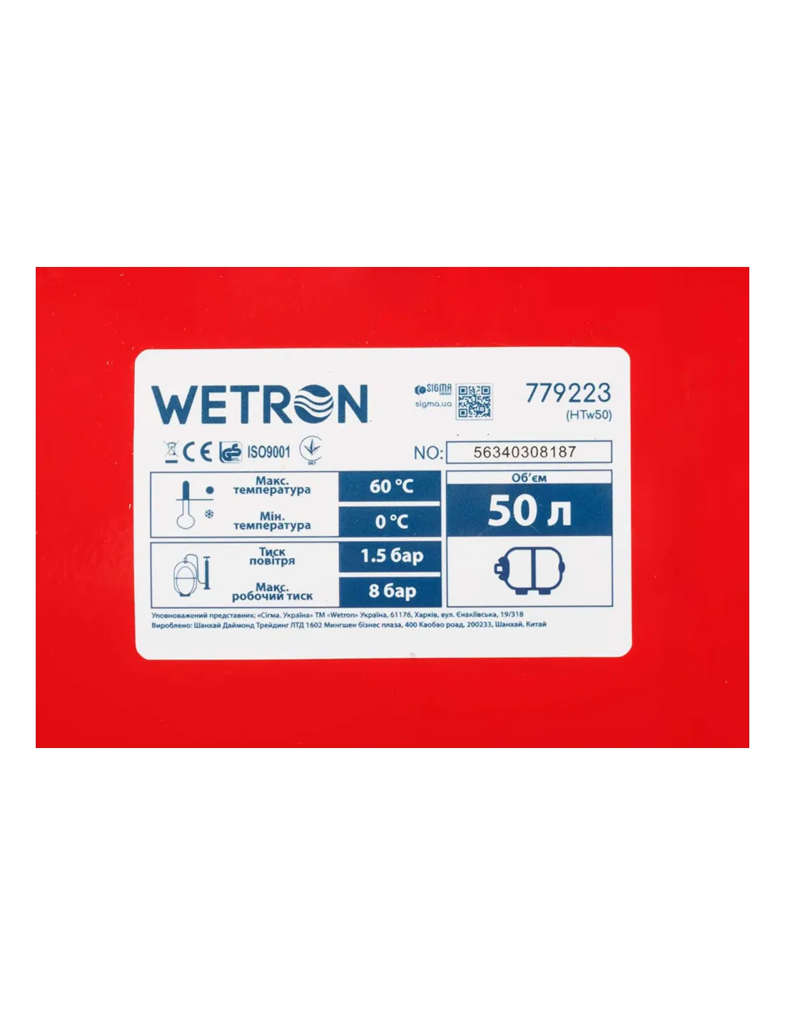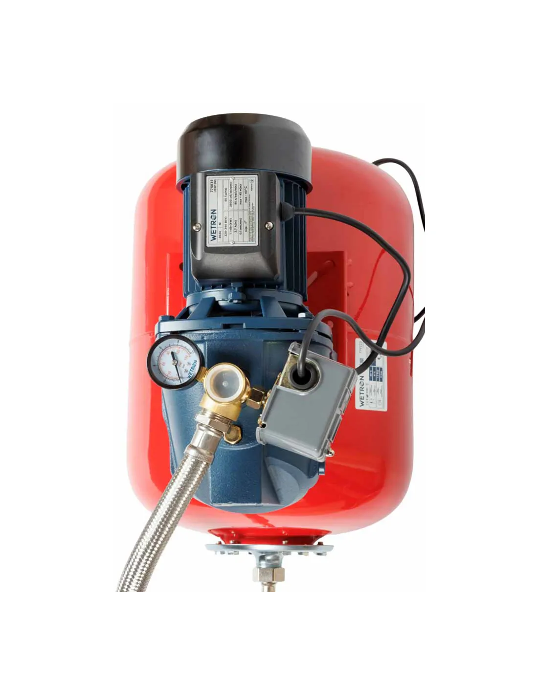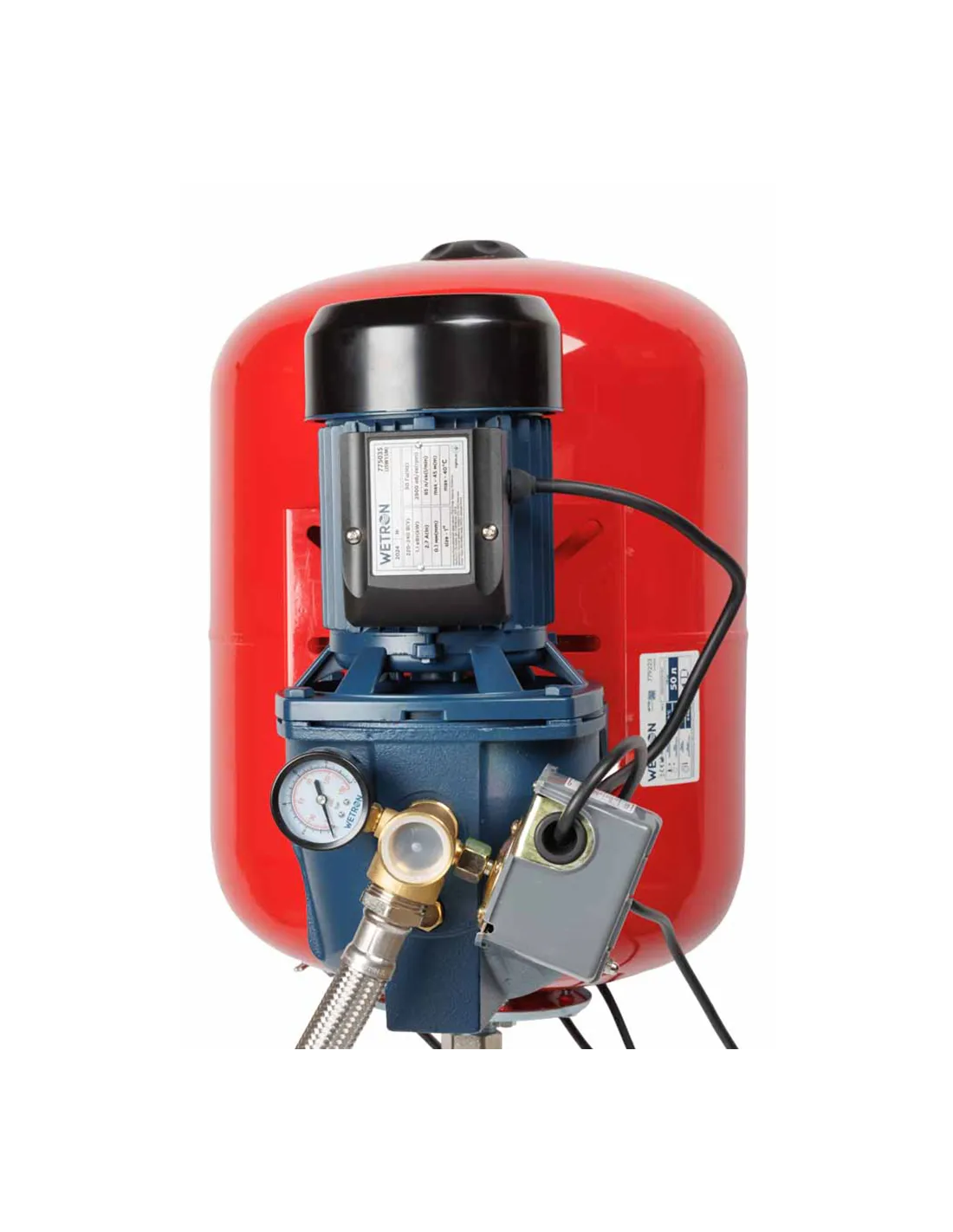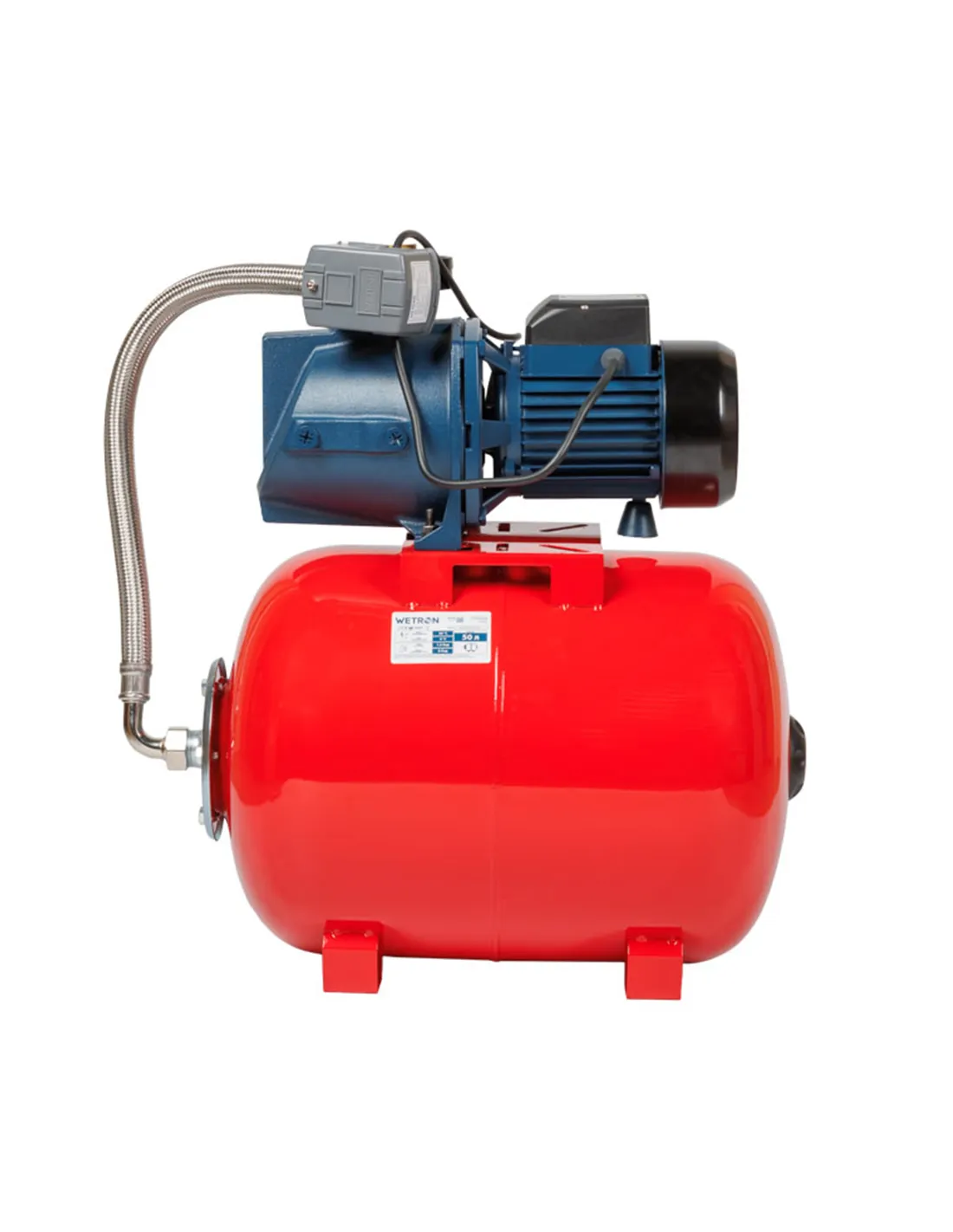 Насосна станція Wetron 775035/50 з відцентровим насосом та гідробаком на 50 літрів призначена для подачі води в автоматичному режимі для зрошення та поливу, перекачування чистої води та хімічно неагресивних рідин. Використовується для підтримки необхідного тиску та подачі води у системах водопостачання квартир, приватних будинків та котеджів. Потужність двигуна складає 1,1 кВт. Джерело живлення 220 Вольт (однофазний).