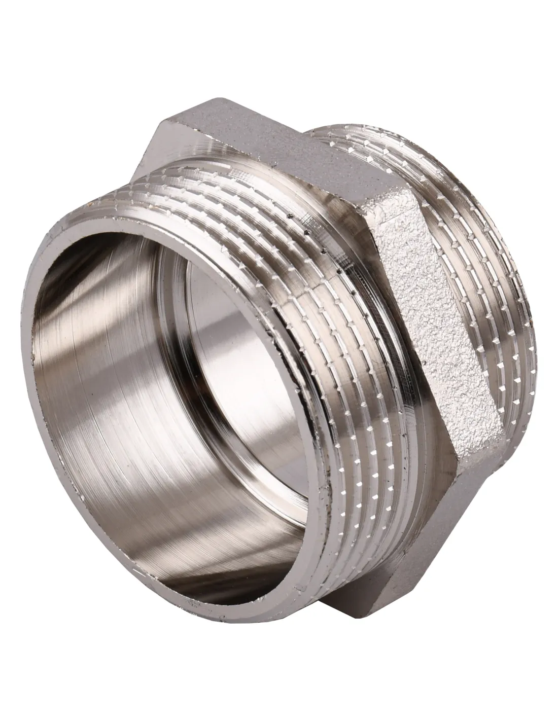 Ниппель редукционный Optimum NN762S 1 1/2 х 1 1/4 дюйма НР, никелированный – усиленный переходной фитинг для магистральных систем. Позволяет выполнить надежный переход между трубами разного сечения с сохранением высокой пропускной способности.