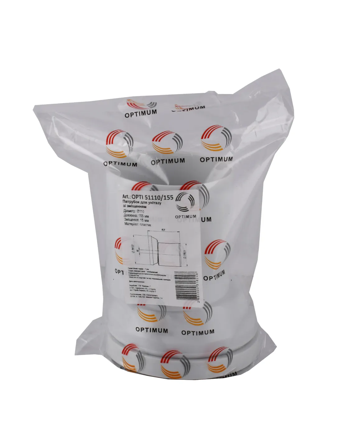 Патрубок для унитаза Optimum OPTI 51110/155, 15 мм со смещением, диаметр 110 мм предназначена для использования в системах водоснабжения, полива и технических трубопроводах. Гарантия 12 месяцев. Страна производитель: Украина.