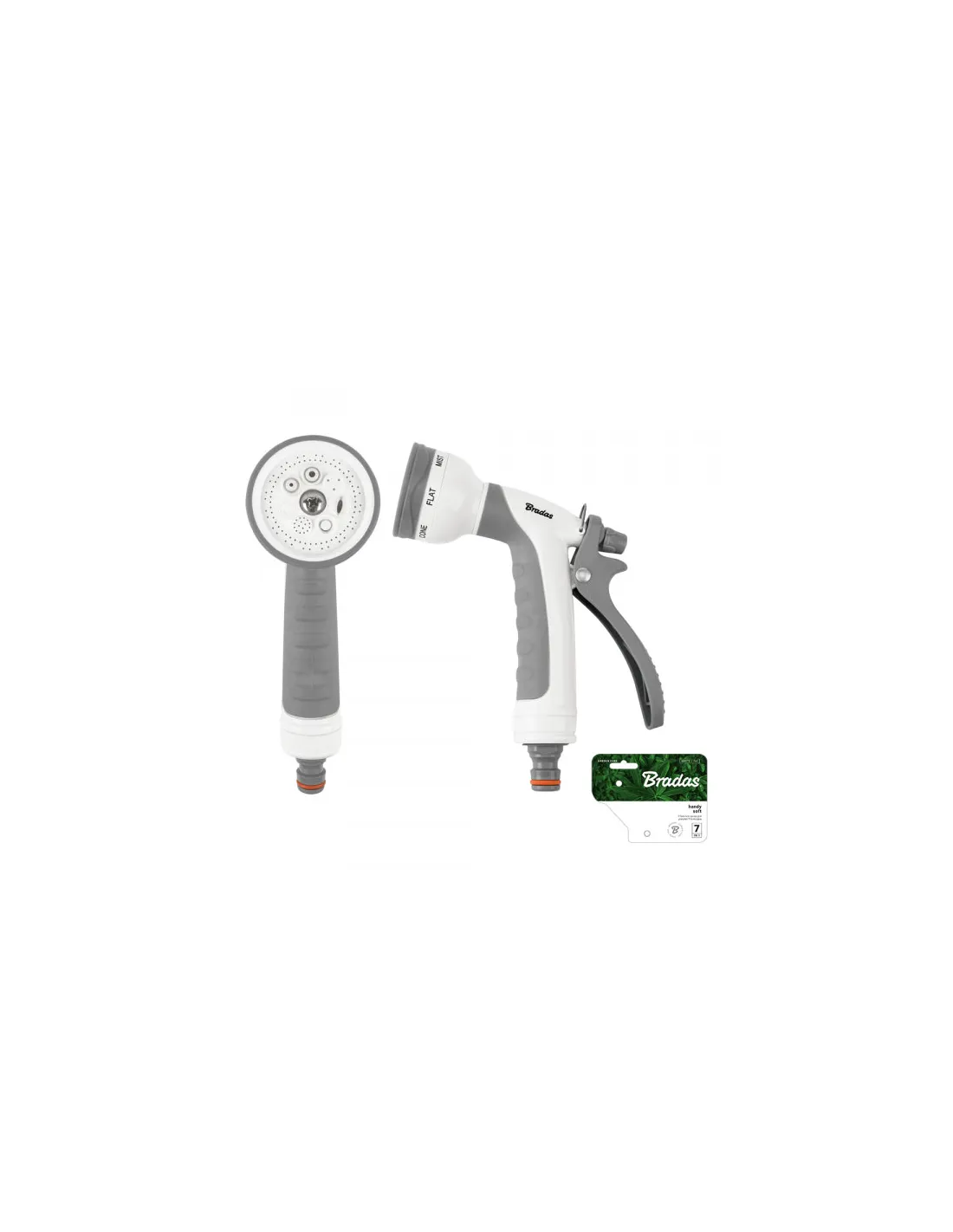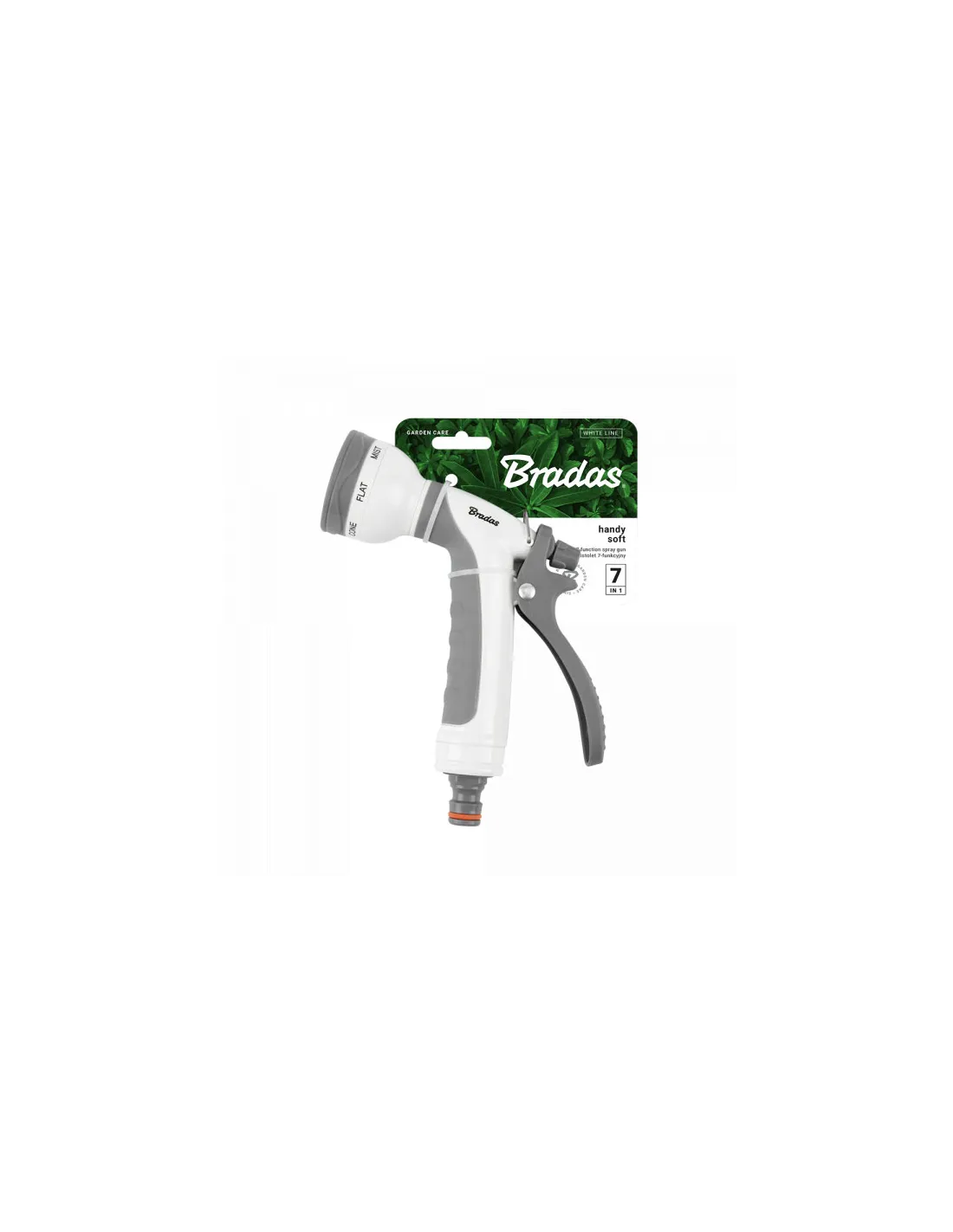 Пістолет для поливу Bradas Handy Soft White Line WL-EN8TK має 7 режимів роботи. Пістолет легко підключається до садового шлангу за допомогою конектора.