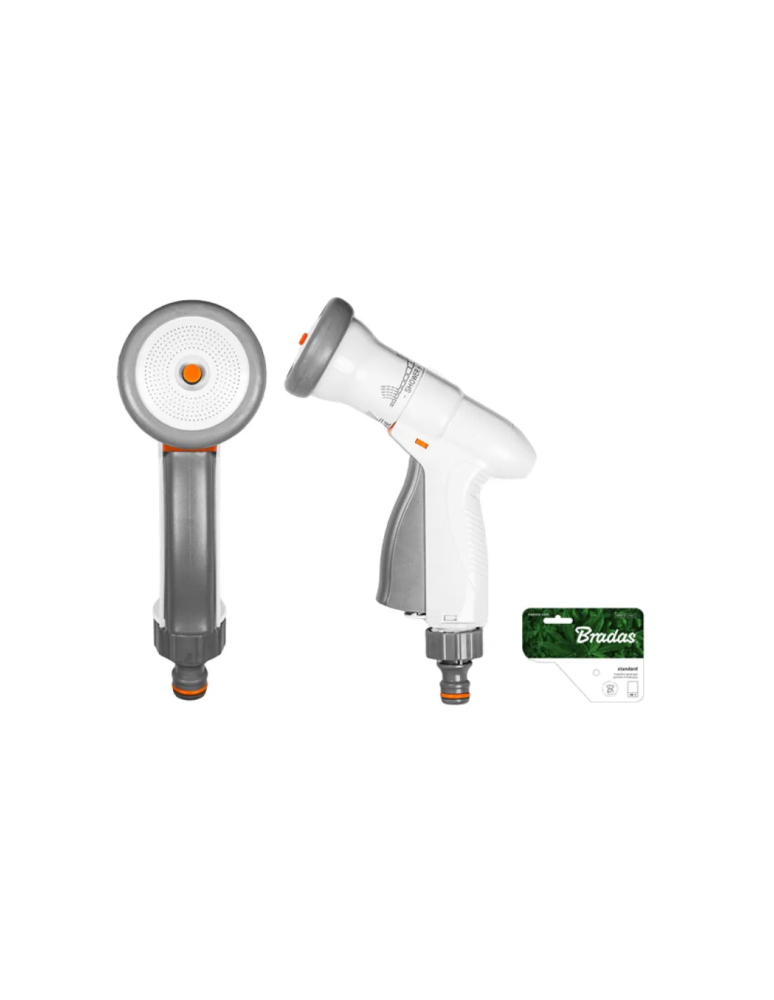 Пістолет для поливу Bradas Super Spray White Line WL-EN8TK призначений для ручного поливу потрібних об`єктів. Використовується для поливу рослин, садів, городів, прибудинкової території та садової техніки. Пістолет має 4 режими розпилення води: душ, конус, струмінь, туман. Оснащений важелем для плавного регулювання інтенсивності водяного потоку. Закінчується ніпелем для швидкого з`єднання. Гарантія на виріб 12 місяців, термін служби необмежений. Країна-виробник Польща.