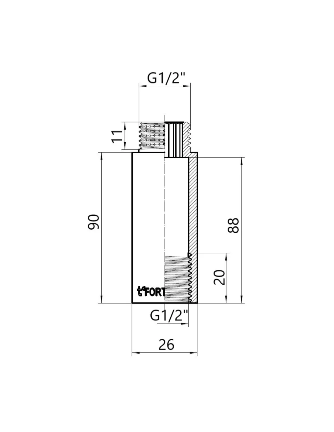 Подовжувач латунний Thermo Alliance Forte TAF1301590 хром, 90 х 1/2 дюйма виготовлений з високоякісної латуні з хромованим покриттям і є незамінним елементом при монтажі трубопроводів у системах холодного та гарячого водопостачання, а також опалення для підключення.