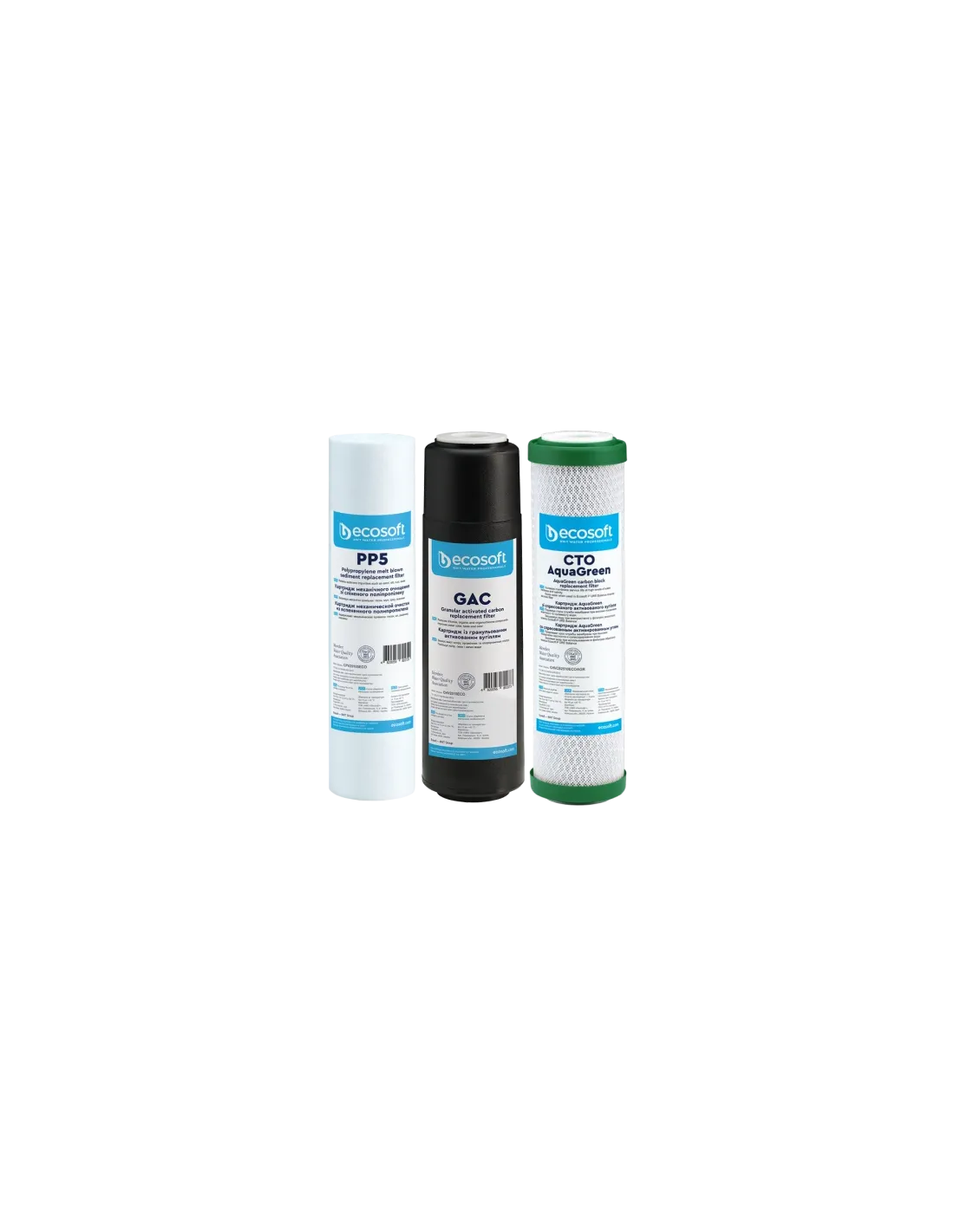 Покращений комплект картриджів Ecosoft 1-2-3 CHV3ECOAGR – це набір попередніх елементів, що фільтрують, призначених для ефективної підготовки води перед зворотноосмотичною мембраною. Картриджі забезпечують багатоступінчасте очищення води від механічних домішок, хлору, органічних речовин, неприємного запаху та кольору. Підходить всім побутових систем зворотного осмосу, включаючи моделі з функцією економії води (recovery). Розроблено для очищення водопровідної води в Україні.