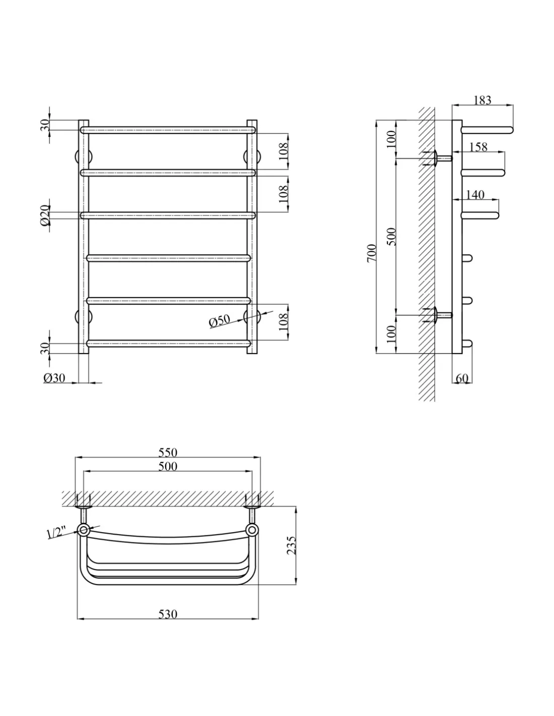 Водяной полотенцесушитель Kroner KRP Prima WT700x500-6 предназначен для использования в ванной комнате. Кроме сушки полотенец, на нем можно сушить белье после стирки, а также дополнительно обогревать Вашу ванную комнату. Габариты изделия 700 мм - высота, 550 мм - ширина, 235 мм - глубина. Изделие в виде лесенки на 6 перегородок. Покрытие полотенцесушителя качественное напыление хромом. Тип подключения - нижнее / верхнее. Тип установки - настенный, на 4 крепления. Межосевое расстояние - 500 мм. Принцип работы - подключение к горячему водоснабжению, через нагревание воды в системе. Гарантия на изделие 10 лет. Страна-производитель - Украина.