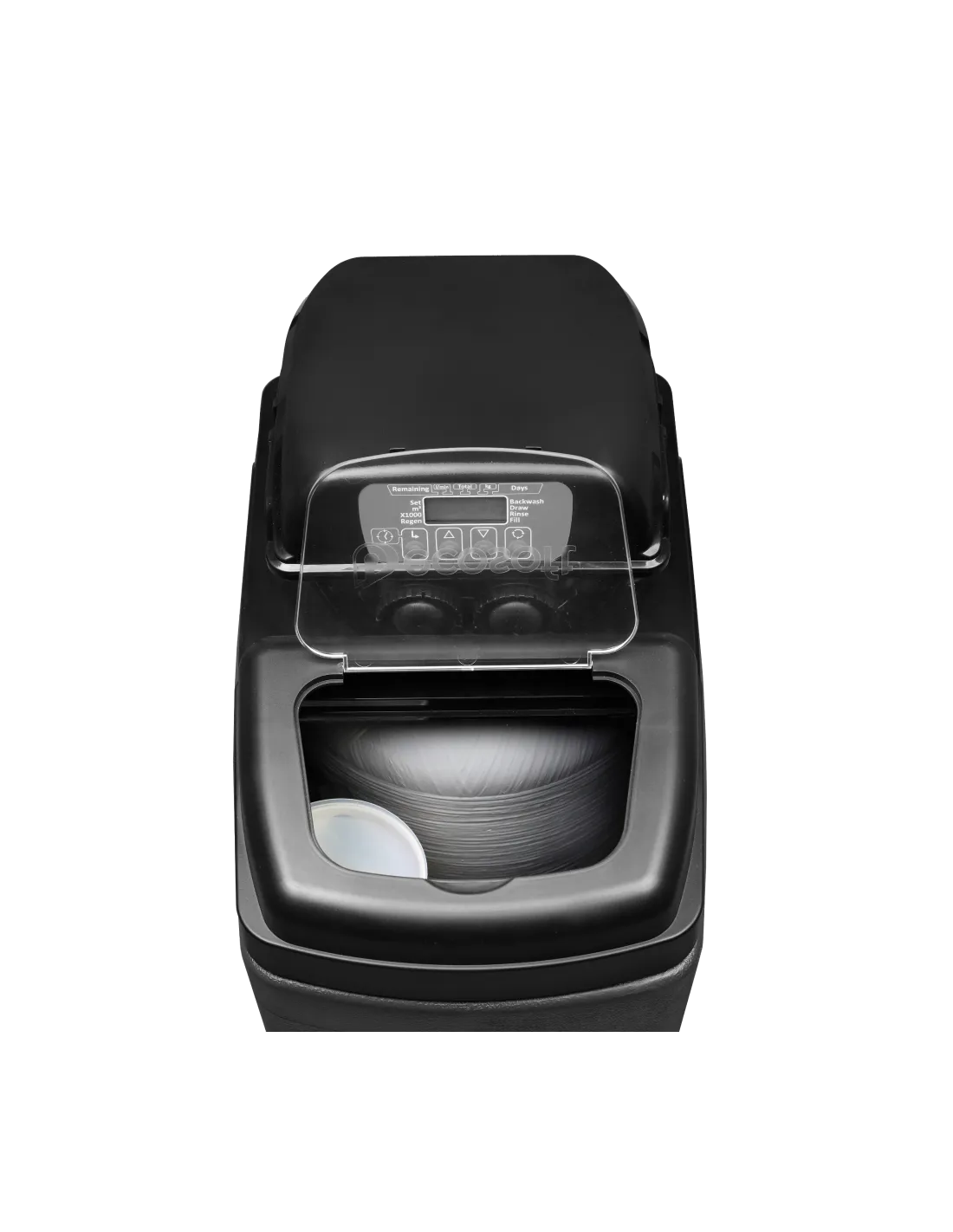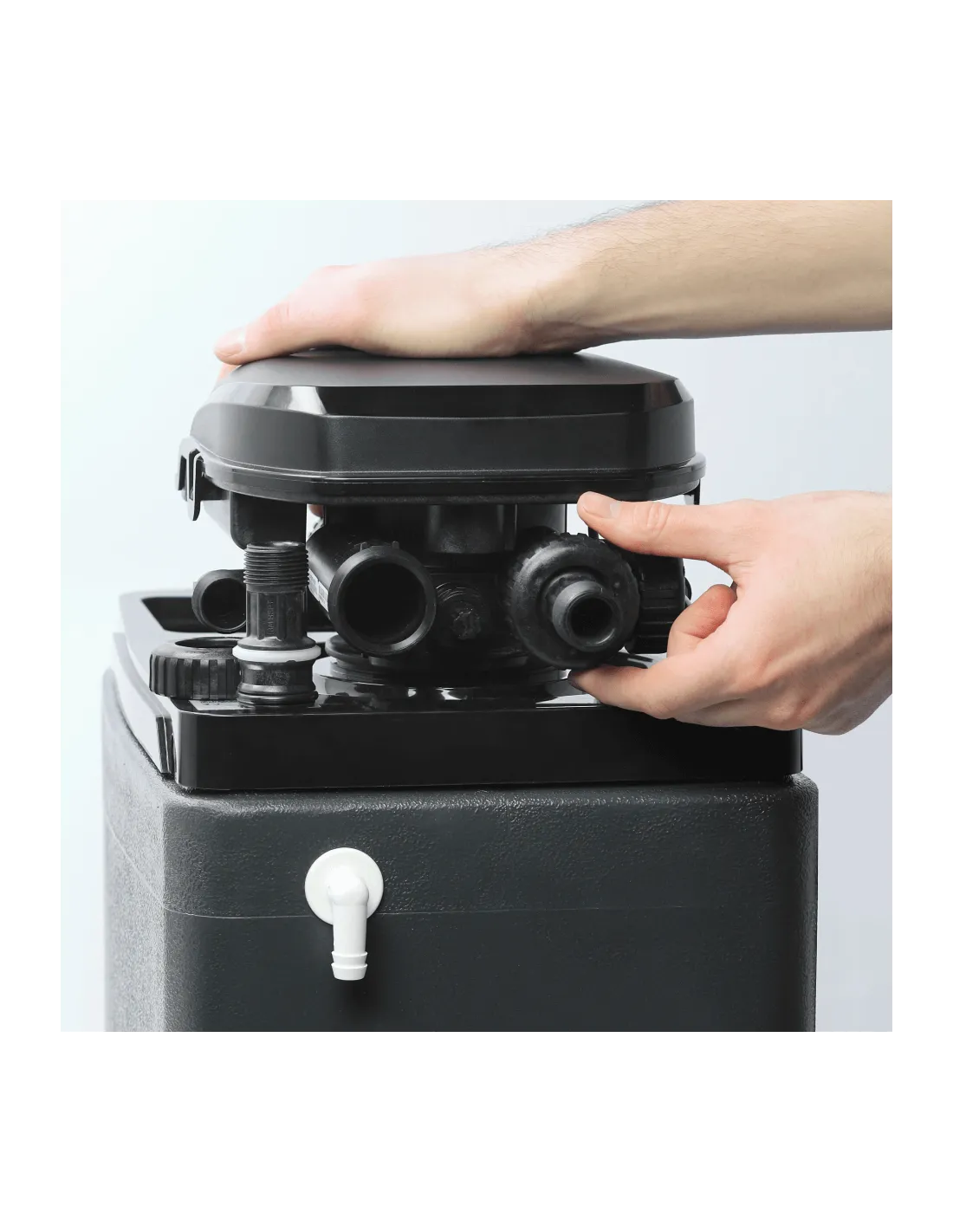 Пом`якшувач Ecosoft Pink 150 працює за принципом іонного обміну: вода проходить через шар смоли DOWEX HCR-S/S, де іони кальцію та магнію замінюються на натрій. У міру насичення смоли система автоматично запускає пропорційну регенерацію, використовуючи сольовий розчин. Для правильної роботи необхідно періодично досипати таблетовану сіль. Всі процеси виконуються автоматично завдяки електронному блоку керування.