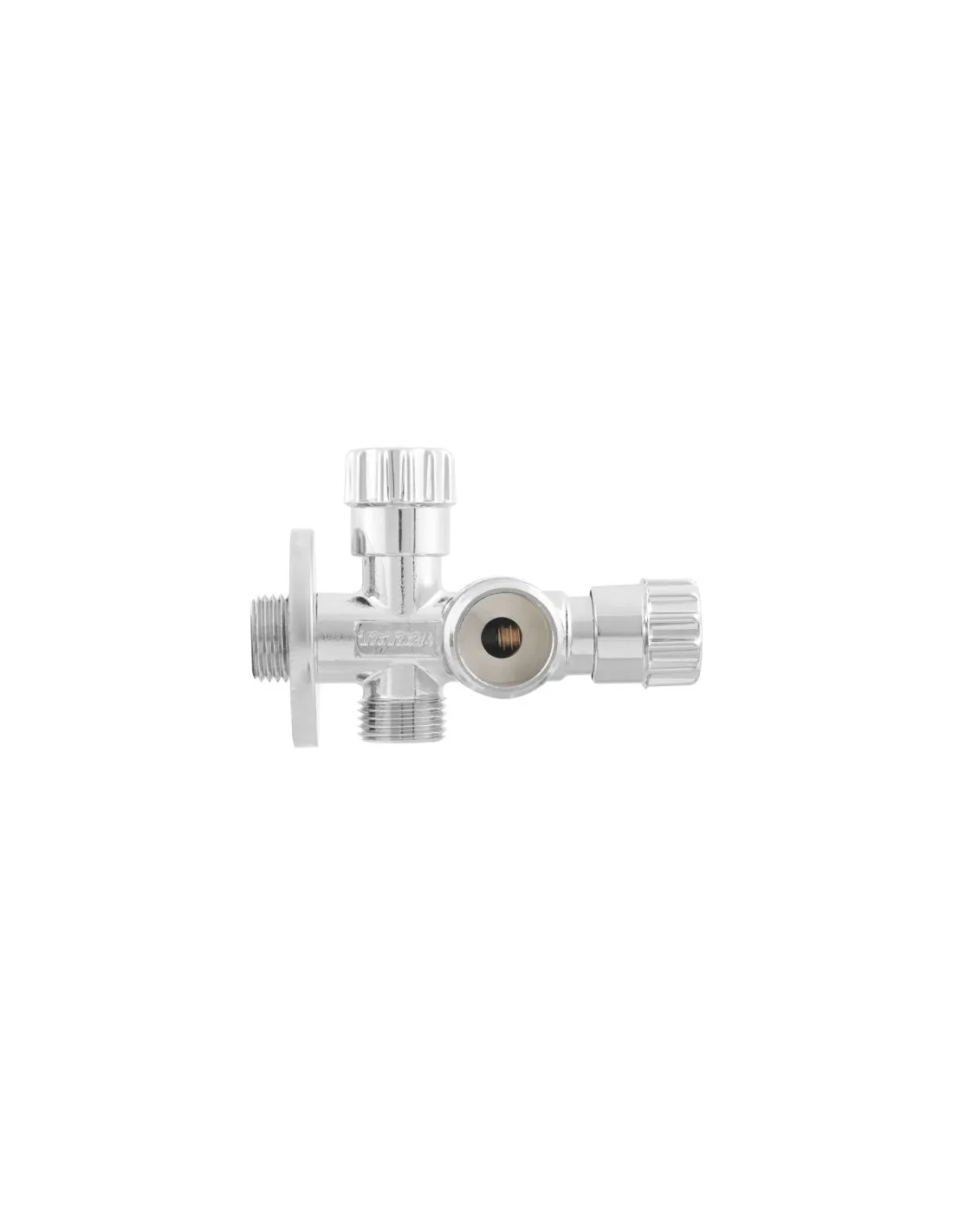 Кран приладовий кутовий Raftec VBE010101 1/2х1/2х1/2 дюйма, вентильний - це потрійний прохідний кран, призначений для одночасного підключення двох споживачів до однієї точки водорозбору. Кутове виконання і наявність незалежних вентилів дозволяють зручно розподілити потоки води, наприклад, для підключення змішувача і зливного бачка одночасно. вузлів.