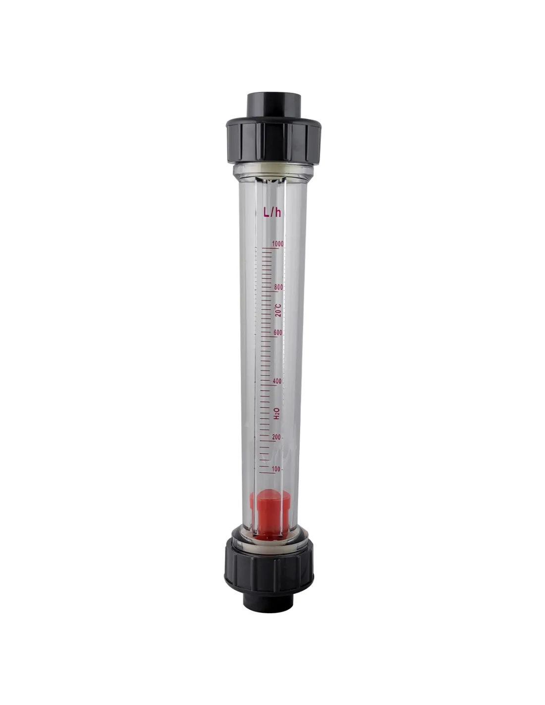 Ротаметр трубного типа Raifil LZS-25 100-1000 – прибор определения объемного расхода воды за единицу времени. Состоит из прозрачного корпуса с отсеком для воды и поплавка. В зависимости от интенсивности потока поплавок поднимается на определенный уровень, которому соответствует значение на шкале. Монтируется на вертикальном трубопроводе с направлением течения снизу вверх. Измерение скорости потока воды L/H от 100 до 1000 литров в час.