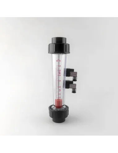 Ротаметр трубного типа Raifil LZS-32D/GR 0.6-6 – прибор определения объемного расхода воды за единицу времени с герконовым датчиком. Состоит из прозрачного корпуса с отсеком для воды и поплавка. В зависимости от интенсивности потока поплавок поднимается на определенный уровень, которому соответствует значение на шкале и срабатывает герконовый датчик. Монтируется на вертикальном трубопроводе с направлением течения снизу вверх. Измерение скорости потока воды L/H от 0.6 до 6 литров в час.