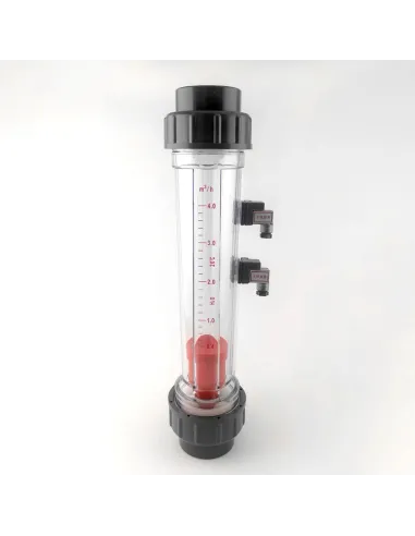 Ротаметр трубного типу Raifil LZS-50 GR 0.4-4 – пристрій визначення об`ємної витрати води за одиницю часу з герконовим датчиком. Складається з прозорого корпусу з відсіком для води та поплавця. Залежно від інтенсивності потоку поплавок піднімається певний рівень, якому відповідає значення на шкалі і спрацьовує герконовий датчик. Монтується на вертикальному трубопроводі із напрямком течії знизу вгору. Вимірювання швидкості потоку води L/H від 0.4 до 4 літрів на годину.