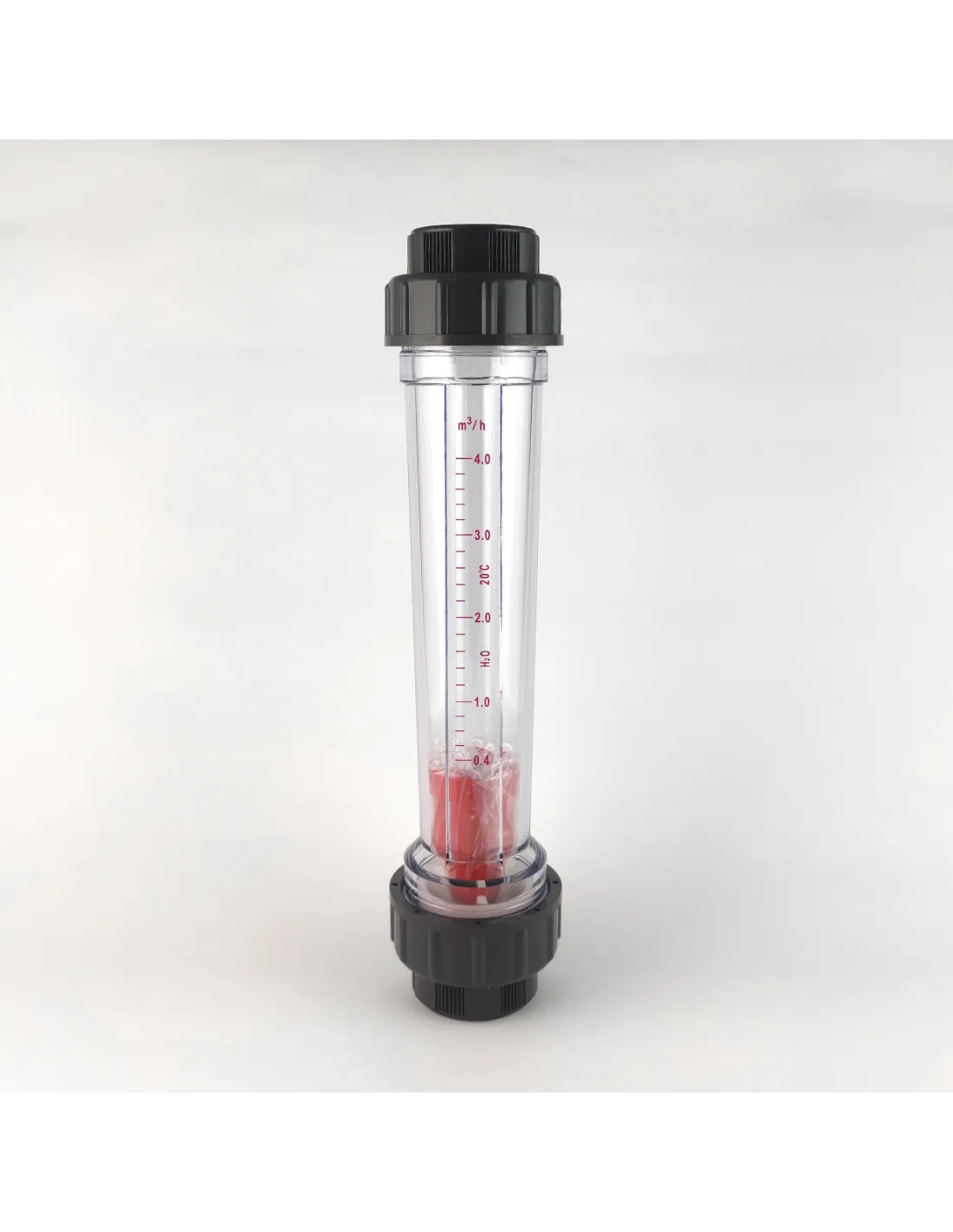 Ротаметр трубного типу Raifil LZS-50 R 0.4-4 – пристрій визначення об`ємної витрати води за одиницю часу. Складається з прозорого корпусу з відсіком для води та поплавця. Залежно від інтенсивності потоку поплавець піднімається певний рівень, якому відповідає значення на шкалі. Монтується на вертикальному трубопроводі із напрямком течії знизу вгору. Вимірювання швидкості потоку води в даній моделі L/H від 0.4 до 4 літрів на годину.