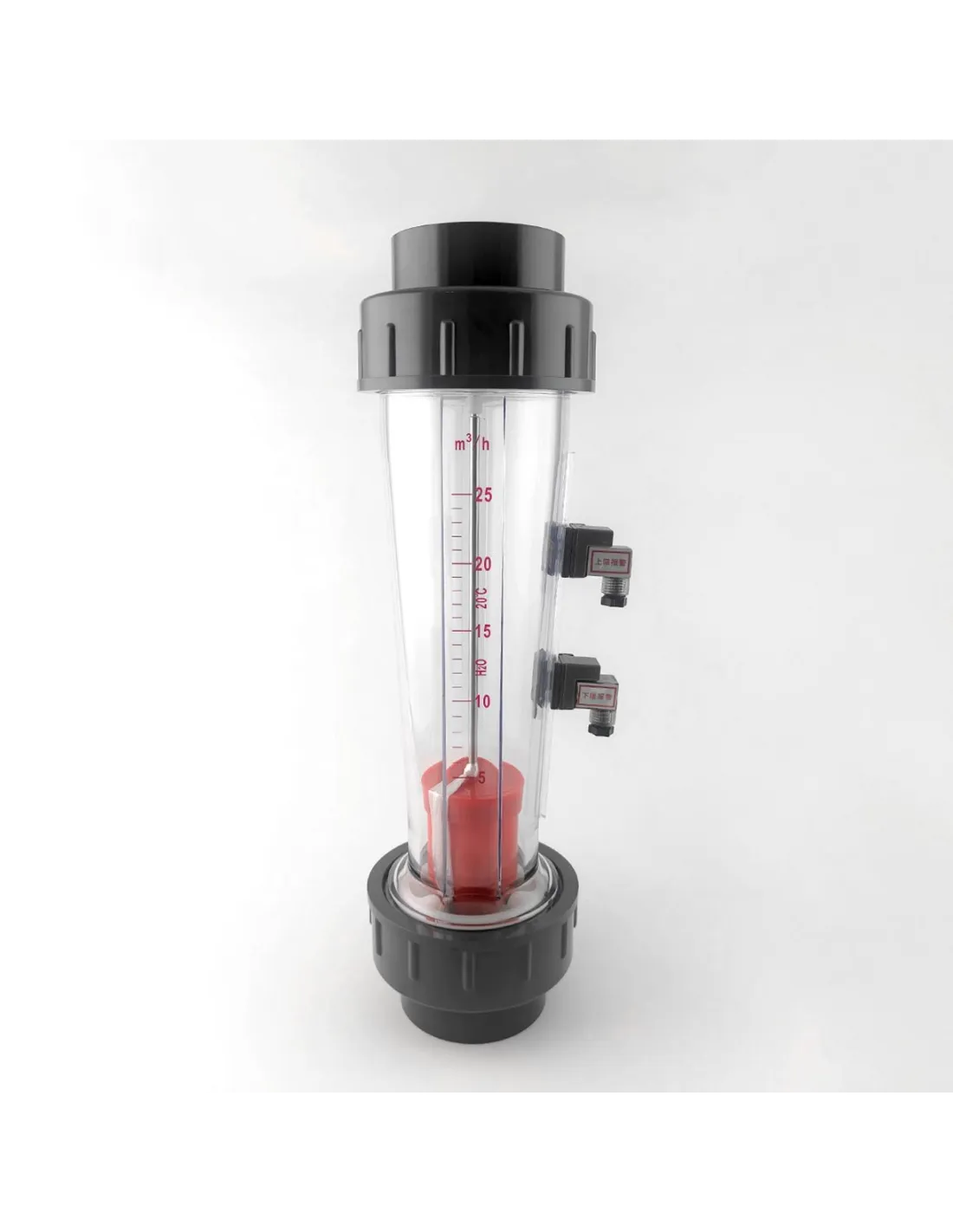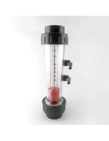 Ротаметр трубного типу Raifil LZS-65 GR 5-25 – прилад визначення об`ємної витрати води за одиницю часу з герконовим датчиком. Складається з прозорого корпусу з відсіком для води та поплавця. Залежно від інтенсивності потоку поплавок піднімається певний рівень, якому відповідає значення на шкалі і спрацьовує герконовий датчик. Монтується на вертикальному трубопроводі DN65 із напрямком течії знизу вгору. Вимірювання швидкості потоку води L/H від 5 до 25 літрів на годину.