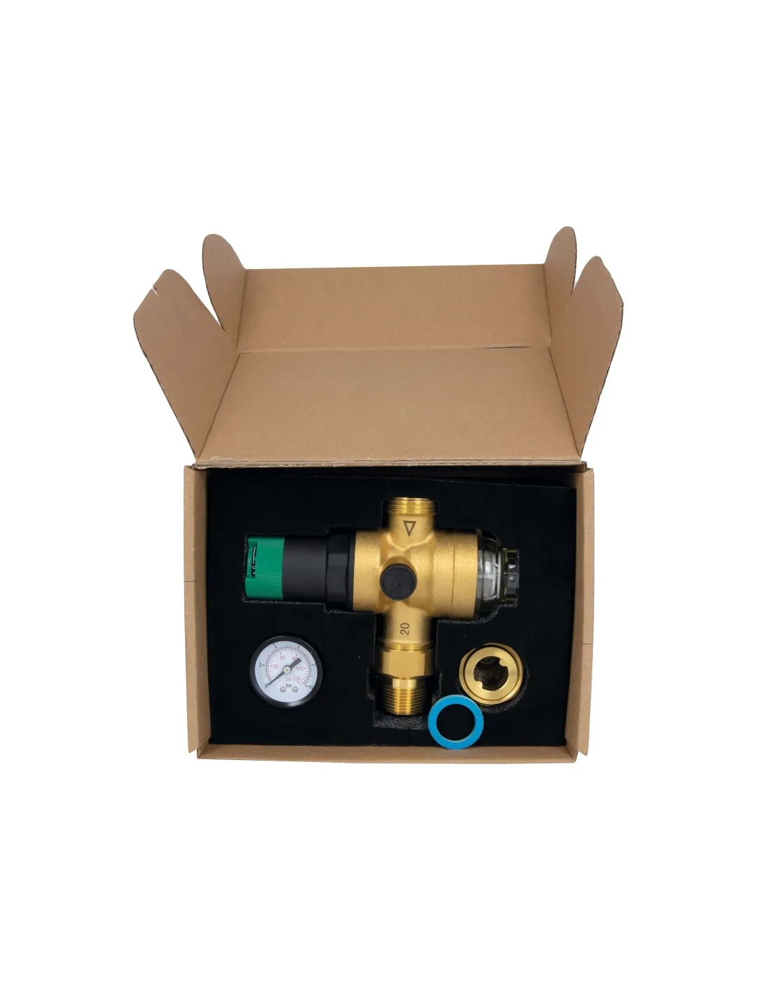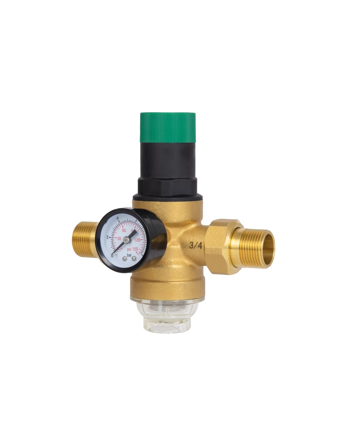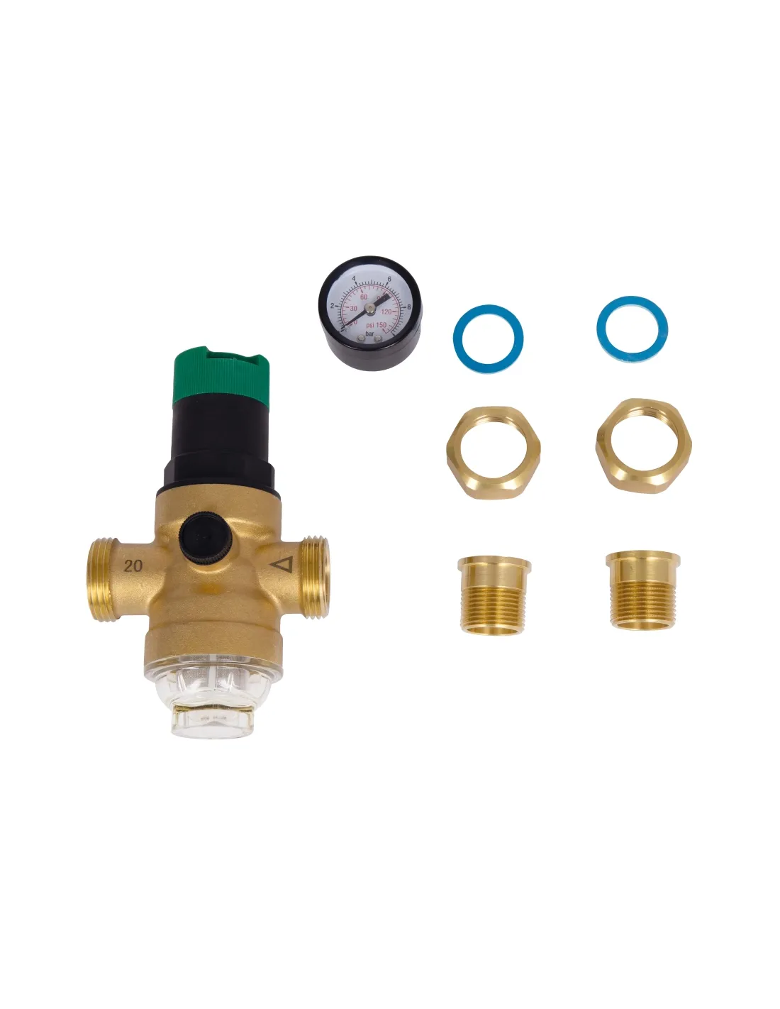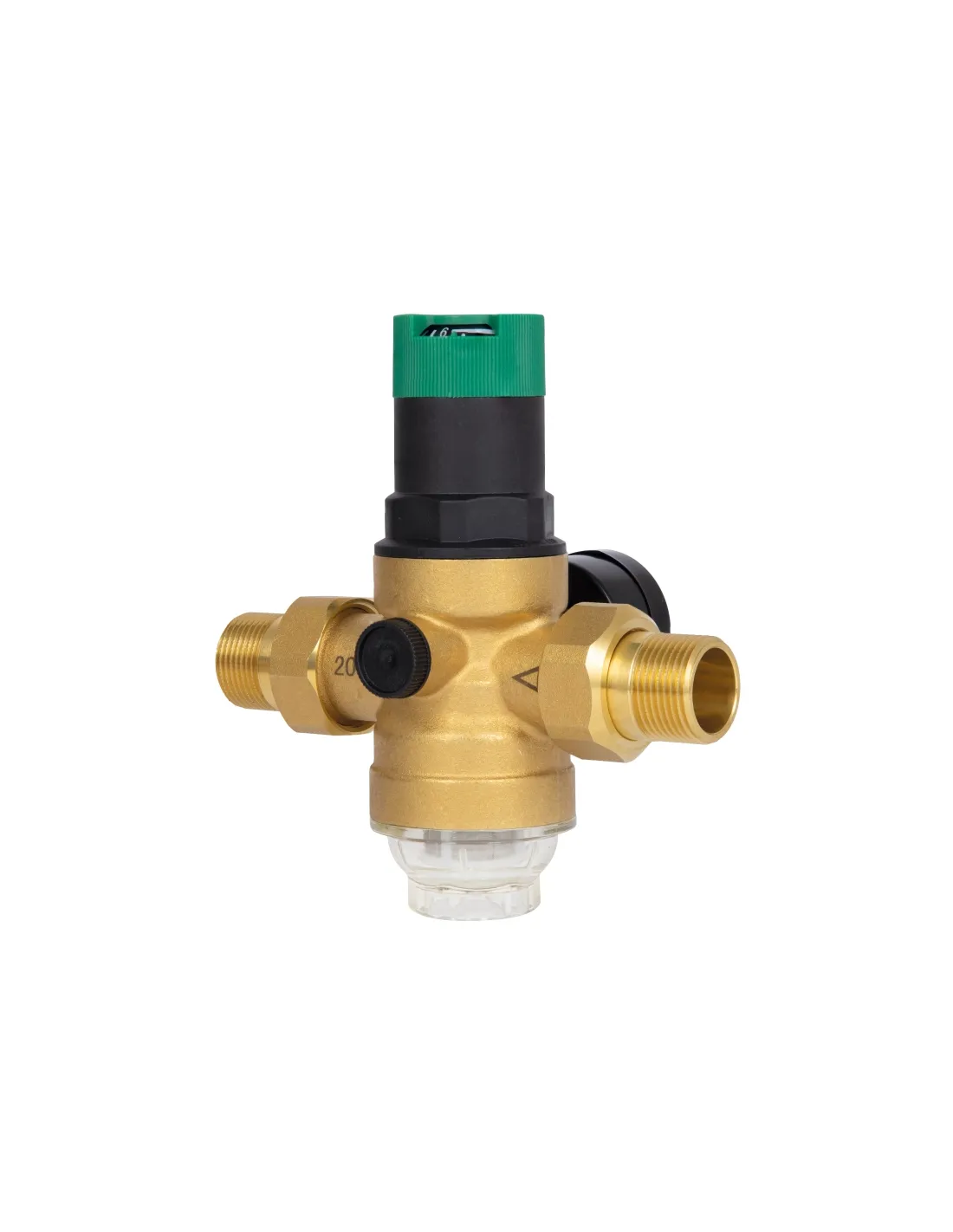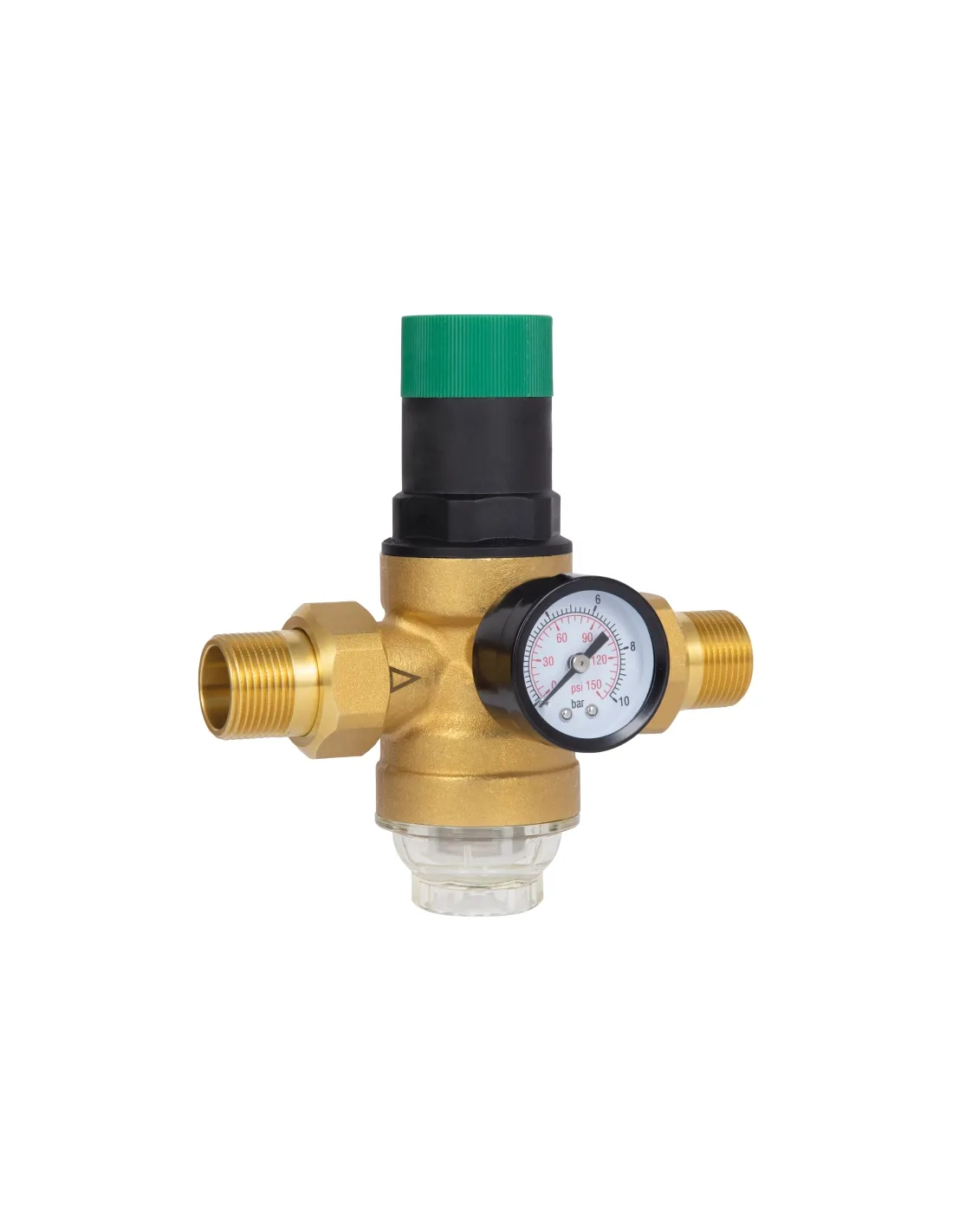 Цей фільтр повинен бути встановлений на горизонтальній ділянці трубопроводу зливним клапаном вниз, а напрямок потоку повинен відповідати напрямку стрілки на корпусі фільтра. Корпус та фітинги виготовлені з латуні, виріб укомплектований редуктором тиску та манометром зі шкалою вимірювань від 0 до 10 бар. Дренажний клапан зі шланговим штуцером дозволяє проводити як пряме, так і зворотне промивання фільтра.