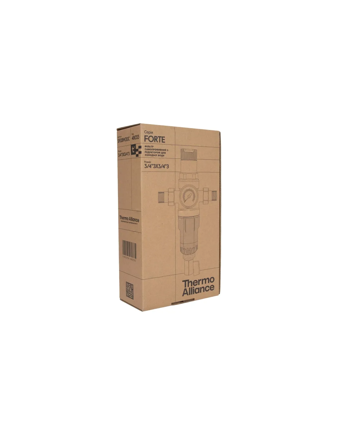Самопромивний фільтр із редуктором тиску Thermo Alliance Forte призначений для очищення водяного потоку від механічних домішок. Передбачені дренажний кульовий кран зі штуцером для підключення шланга та редуктор тиску. Застосовується в мережах холодного побутового та промислового водопостачання.