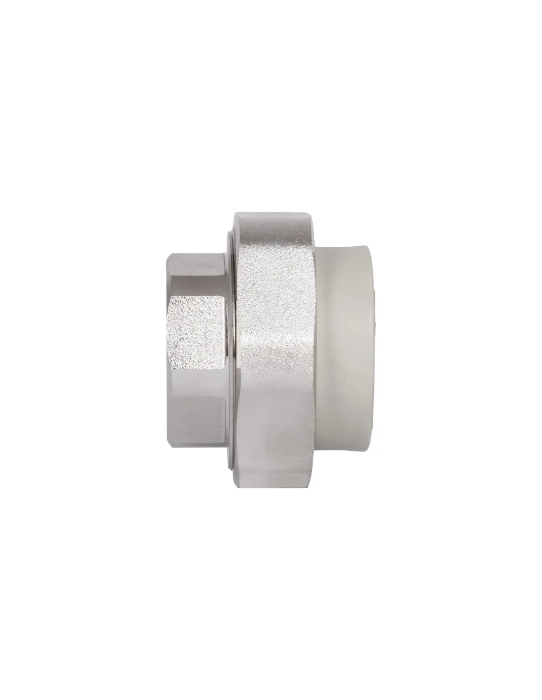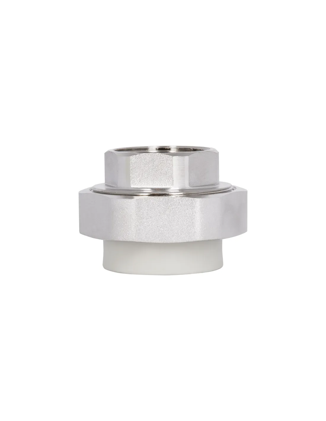 Фитинг состоит из двух частей, соединяемых накидной гайкой, что создает герметичное уплотнение без необходимости прокручивать трубу или оборудование. Латунная головка с никелевым покрытием гарантирует высокую прочность и устойчивость к коррозии и высоким температурам, что критически важно для систем горячего водоснабжения и отопления. Полипропиленовый корпус обеспечивает надежную сварку с трубой, создавая монолитное и долговечное соединение.