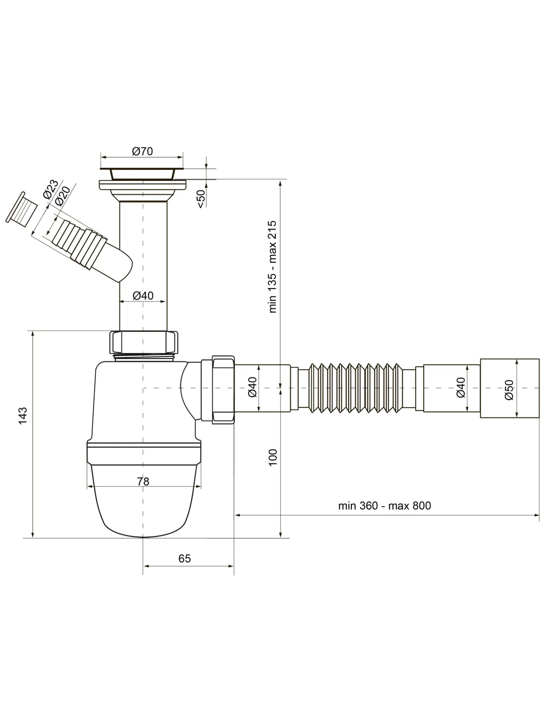 Сифон Optimum OPTI-13043 призначений для використання у квартирах та приватних будинках. Оснащений спеціальним штуцером для надійного кріплення зливного шлангу пральної машини. Чудова якість ущільнювачів гарантує відсутність запахів і протікань протягом усього терміну експлуатації. полімерів;