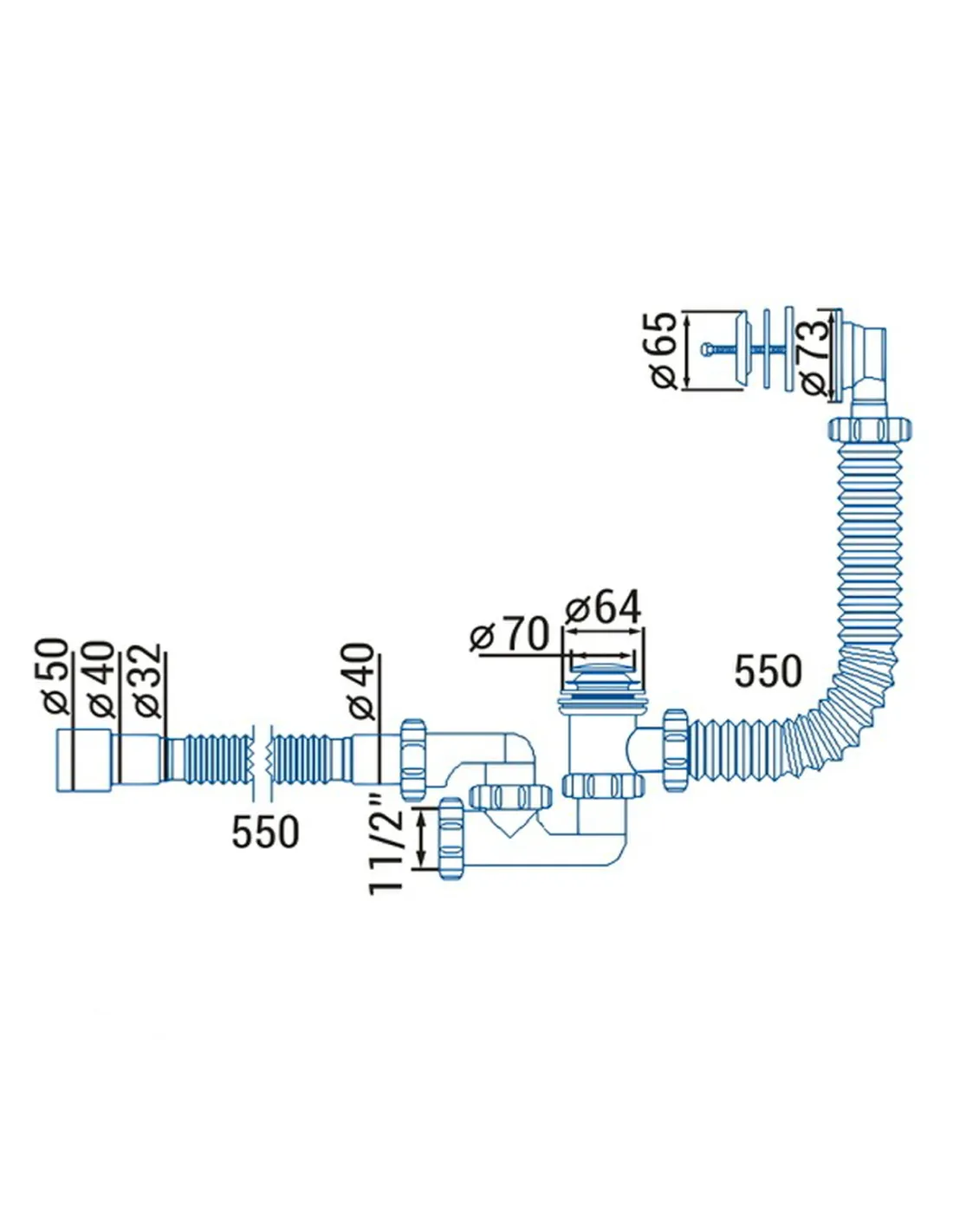 Технические характеристики сифона для ванны Waterstal А - 18089: