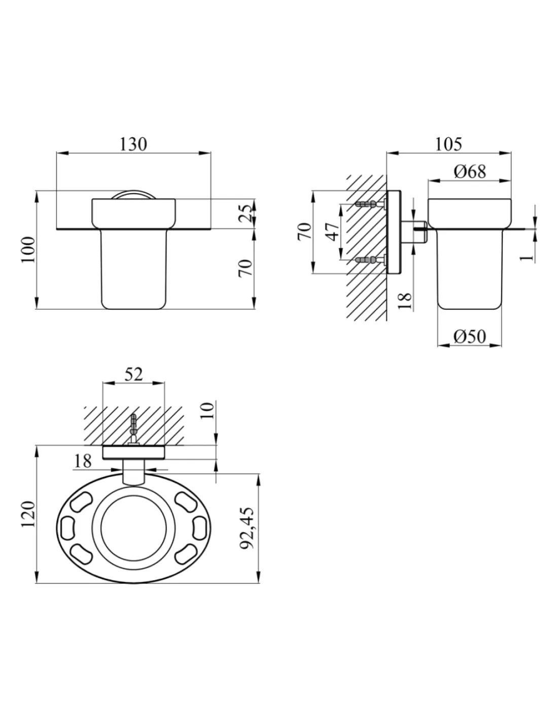 Технічні характеристики склянки для ванної кімнати Kroner KRM