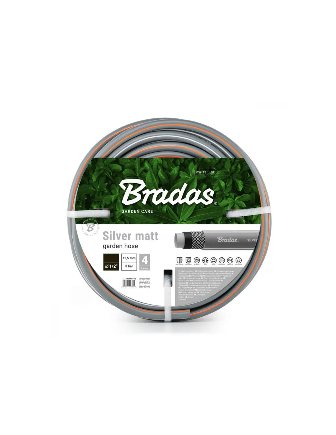 Шланг для полива Bradas Silver Matt 1/2 дюйма, 30 метров, армированный предназначен и используется для полива сада и огорода, а также для ухода за приусадебным участком. Шланг 4-слойный армированный, изготовлен из мягкого ПВХ. Надёжный и качественный поливочный шланг, который прослужит долгие годы. Представлен в сером цвете. Рабочее давление: 8 Бар. Диаметр общий – 1/2 дюйма или 12.5 мм. Рабочая температура: от -10 до 50 градусов по Цельсию. Длина шланга: 30 метров. Гарантия - 12 месяцев. Страна изготовитель - Польша.