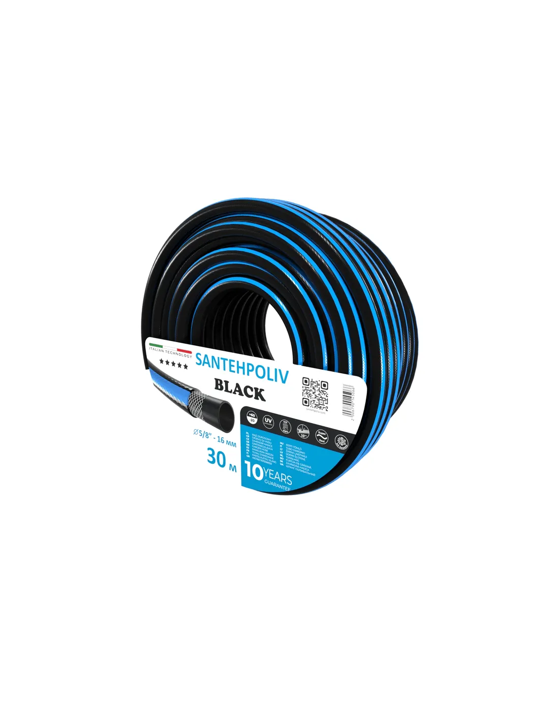 Шланг для полива SantehPoliv BLACK 5/8 дюйма, 30 метров, армированный