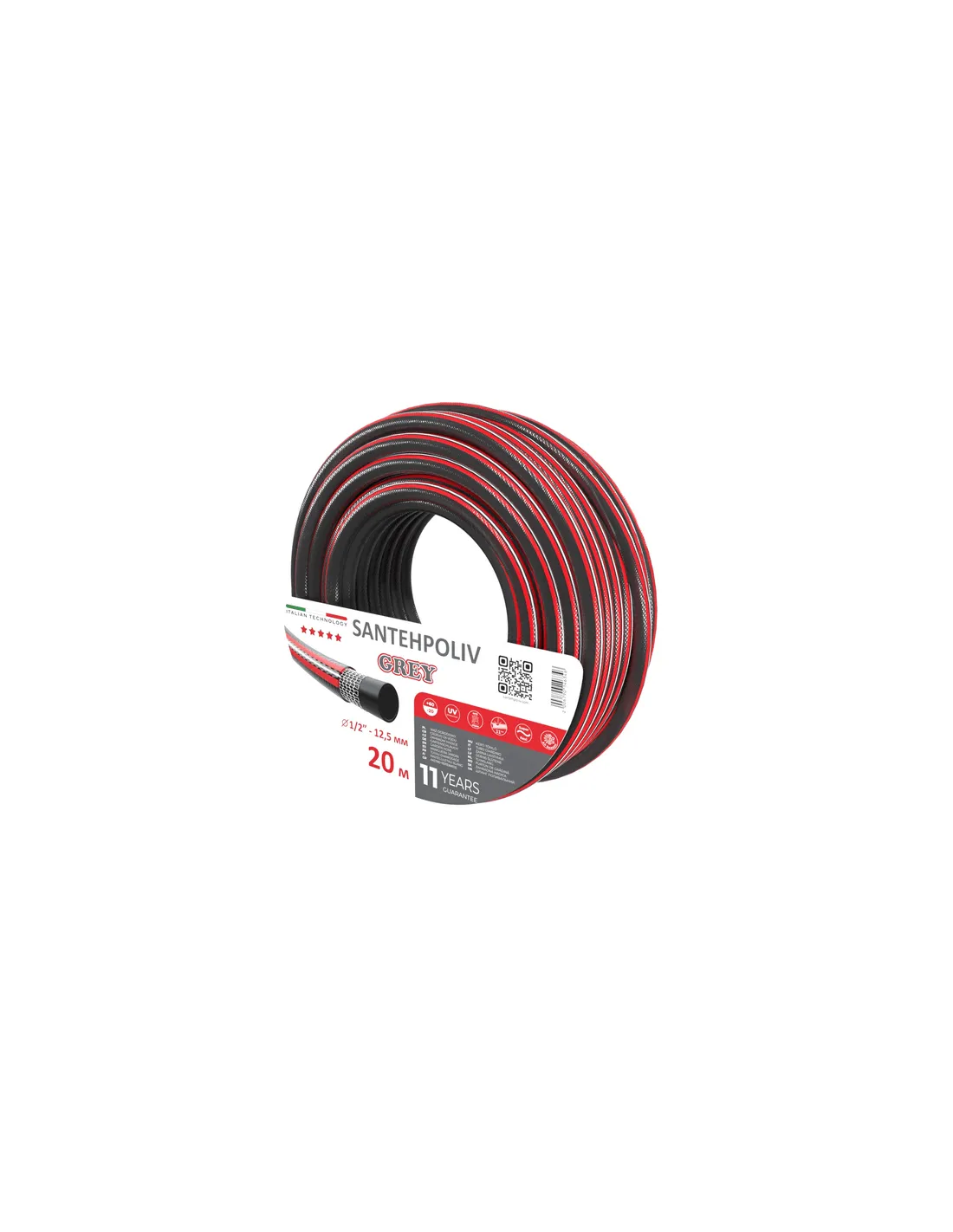 Шланг для полива SantehPoliv GREY 1/2 дюйма, 20 метров, армированный