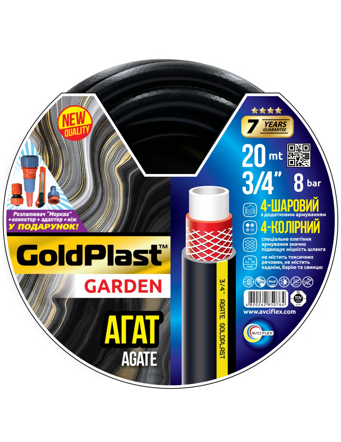 Шланг для поливу Avci Flex входить до групи стандартних шлангів і складається з чотирьох шарів: