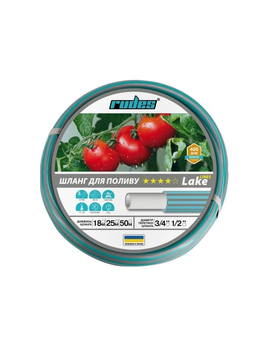 Шланг для поливу Rudes Lake 1/2 дюйма, 18 метрів, армований виготовлений із м`якого високоякісного полівінілхлориду (ПВХ). Матеріал є екологічно безпечним, оскільки не містить токсичних речовин. Такий шланг призначений і використовується для поливу саду та городу, а також догляду за присадибною ділянкою: зрошення газонів, клумб, пішохідних доріжок.